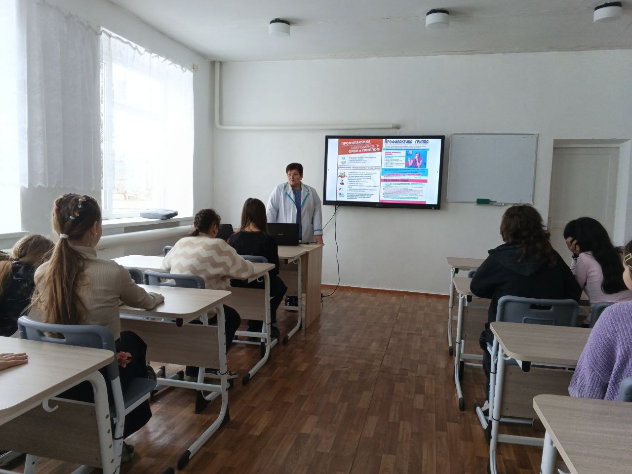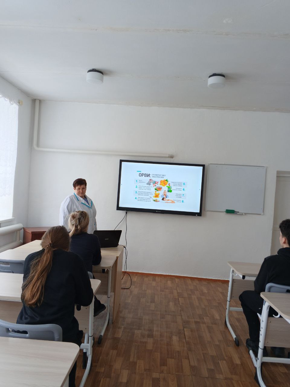 Медицинская сестра кабинета по оказанию медицинской помощи несовершеннолетним Свободненского ФП провела беседу с обучающимися 6 и 10классов на тему: "ОРВИ, Грипп и COVID-19
