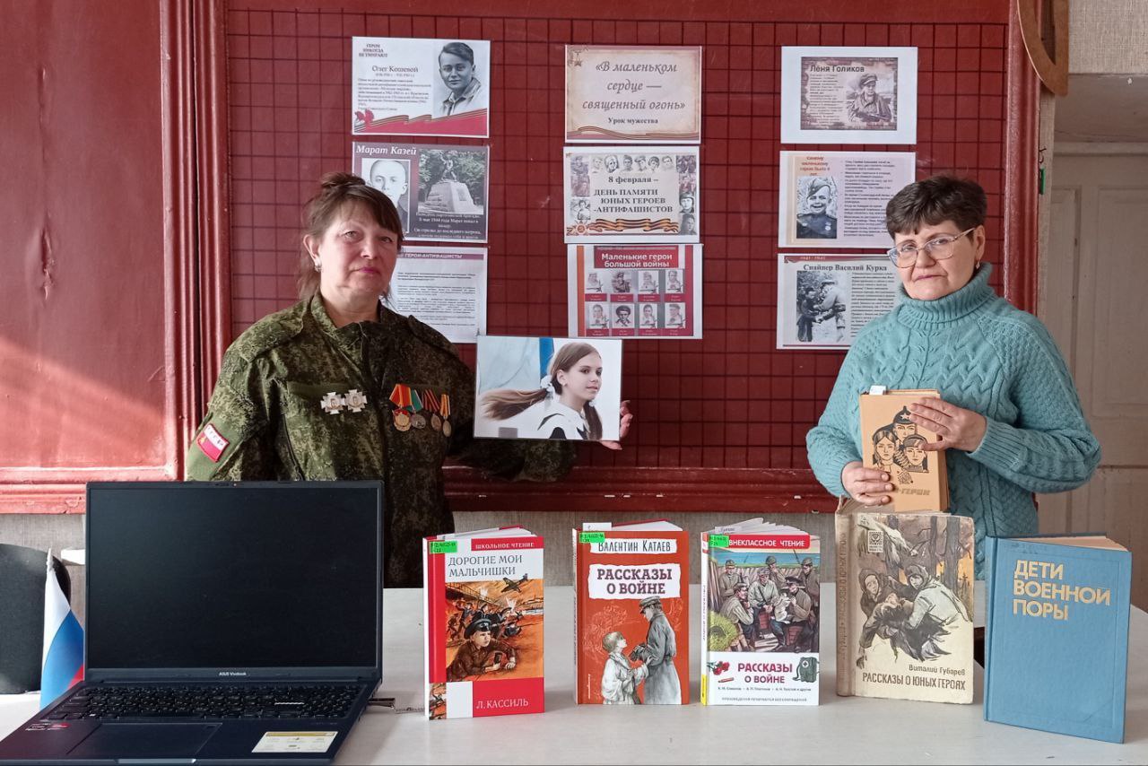 Урок мужества под таким названием провели сотрудники библиотеки-филиала №2 МБУ «ЦБС г.о. Торез» для детей 5-7 классов ГБОУ «Школа №22 г.о. Торез», посвященный Дню юного героя-антифашиста.