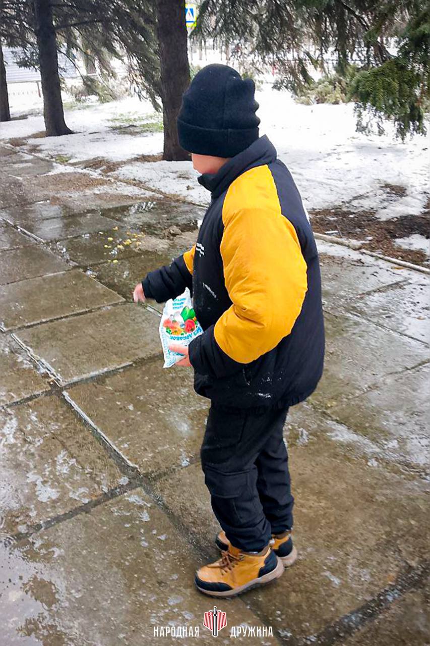 Активисты Народной Дружины из Мангуша вышли на улицы округа во время гололёда для того, чтобы посыпать солью тротуары.