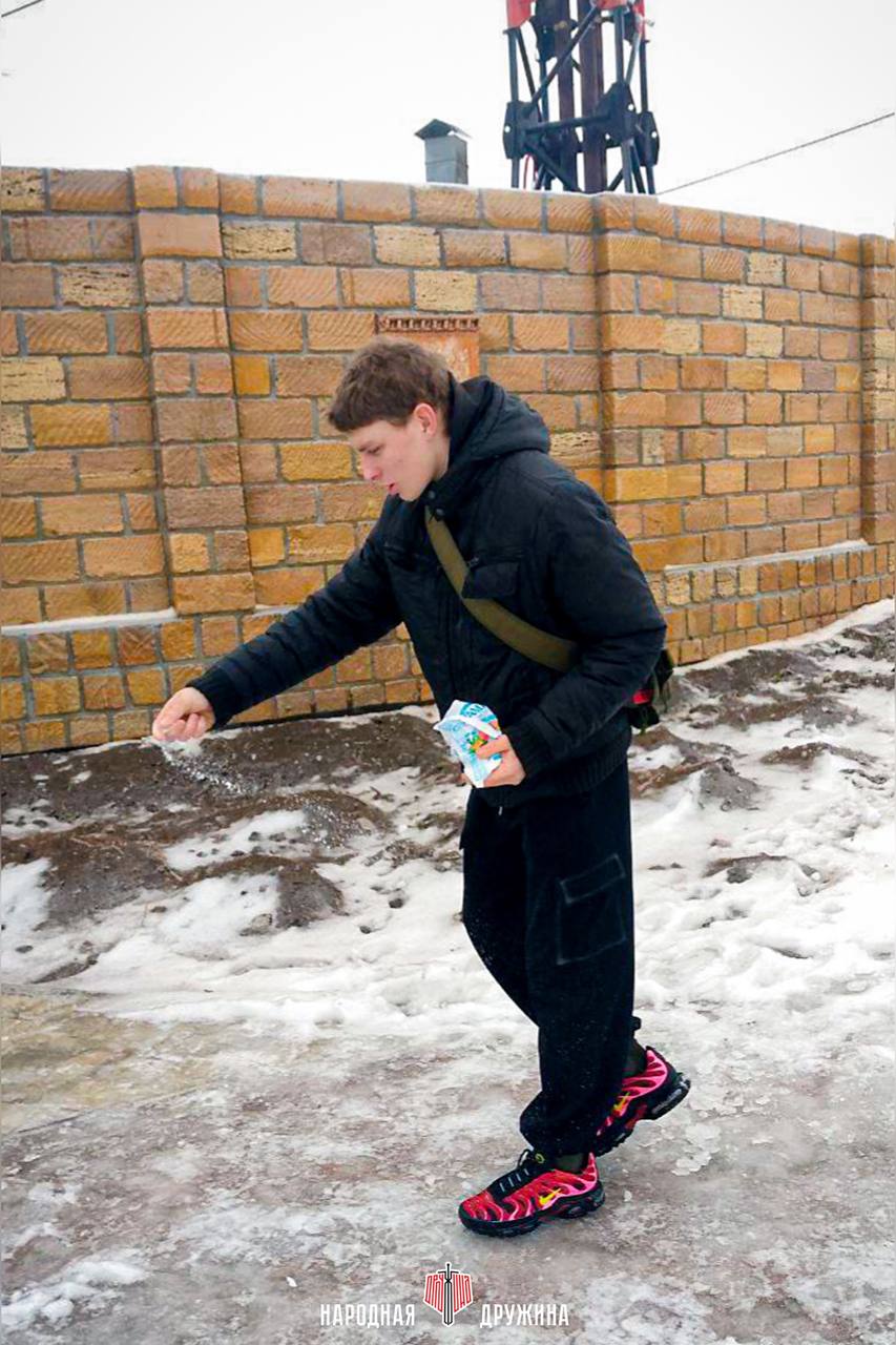 Наши дружинники обработали самые скользкие участки дорог, ведь мы понимаем, как важно уберечь жителей от случайных падений и травм!