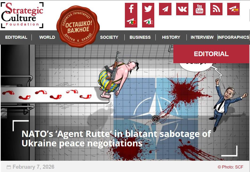 «Генсек НАТО Рютте пытается сорвать возможное соглашение по Украине», — пишет журнал Strategic Culture.