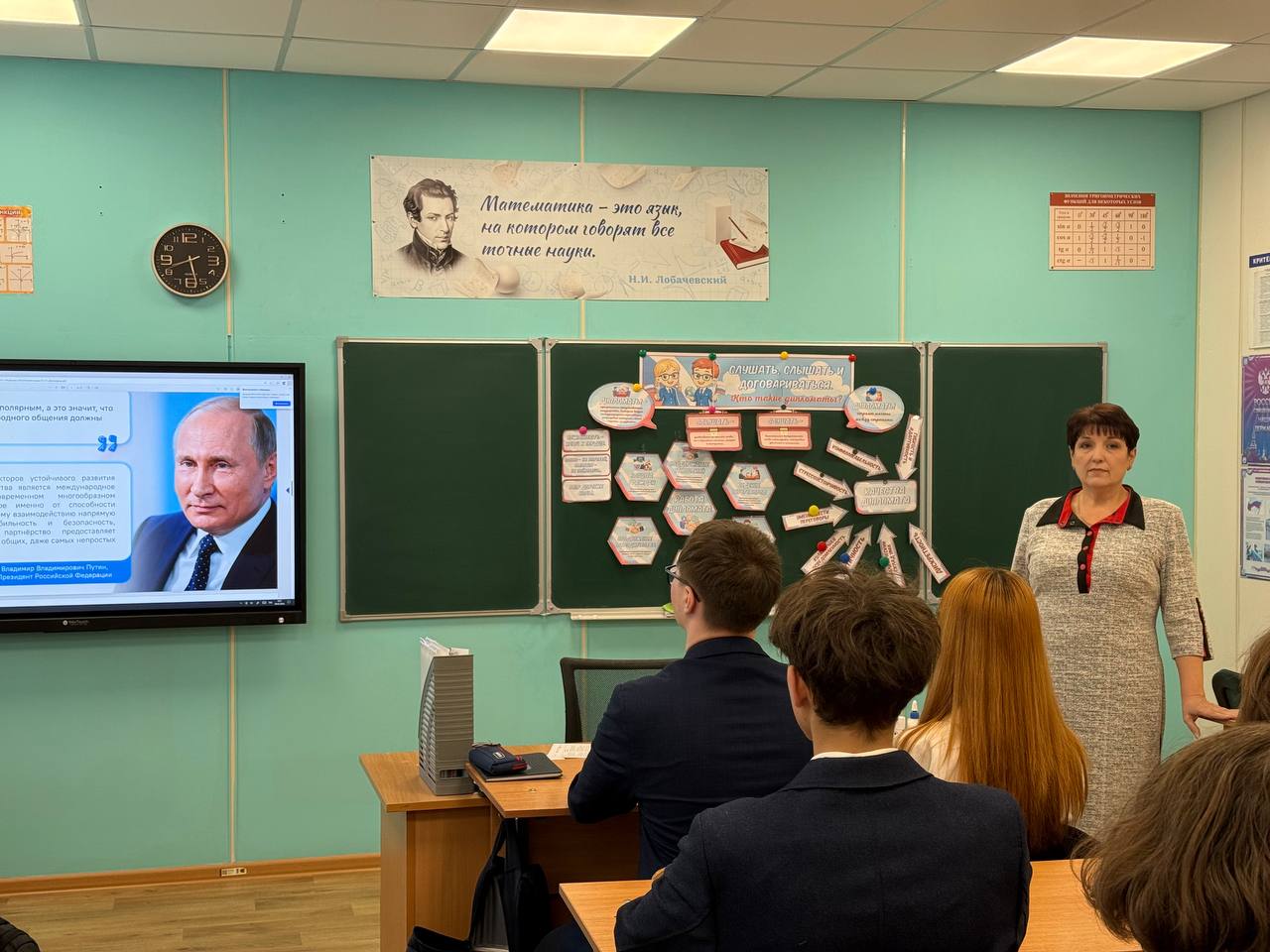 После линейки в классах состоялось внеурочное занятие «Разговоры о важном» на тему: «Слушать, слышать и договариваться. Кто такие дипломаты?»