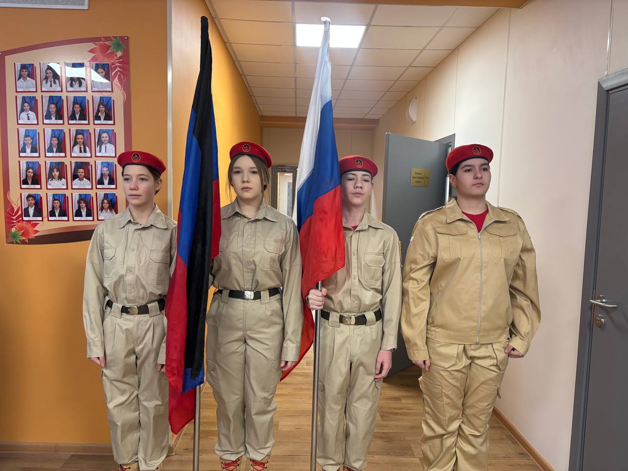 В рамках партийного проекта Единой России "Новая школа" новая учебная неделя в Тельмановской гимназии началась традиционно с линейки и почётного права выноса флага Российской Федерации и флага Донецкой Народной Республики юнармейцами ВПК «Юные патриоты Донбасса» ГБОУ «Тельмановская гимназия Тельмановского м.о.»