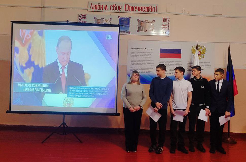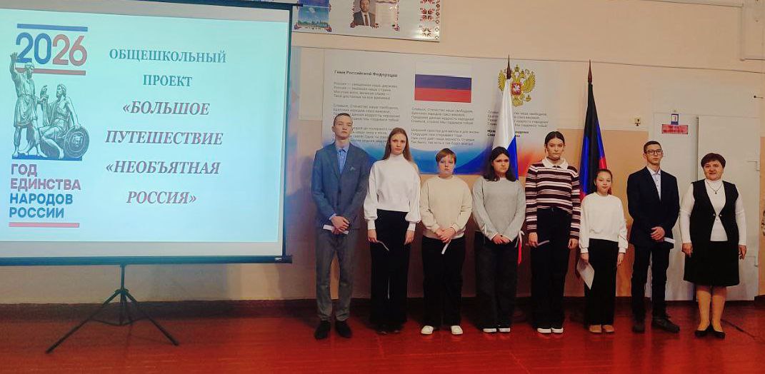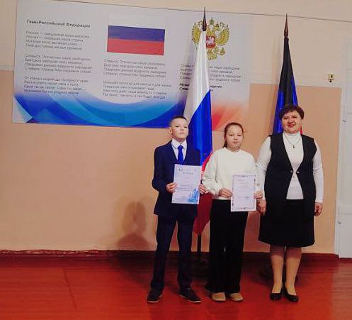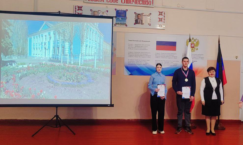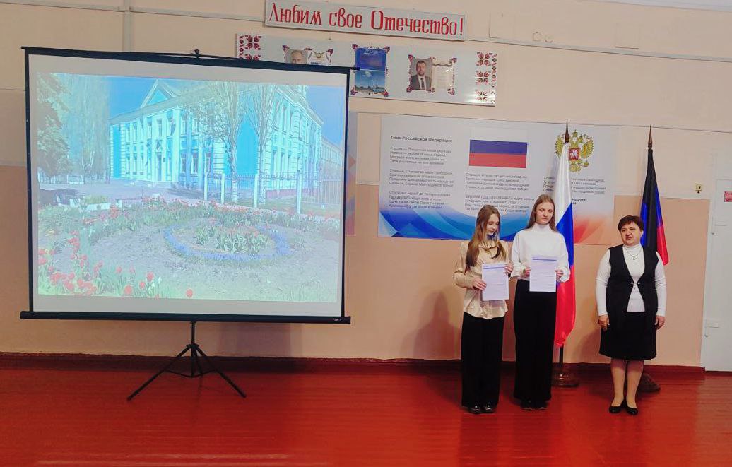 В начале линейки все вместе исполнили Гимн Российской Федерации и Донецкой Народной Республики. Это момент, когда каждый из нас чувствует гордость за свою Родину и школу.