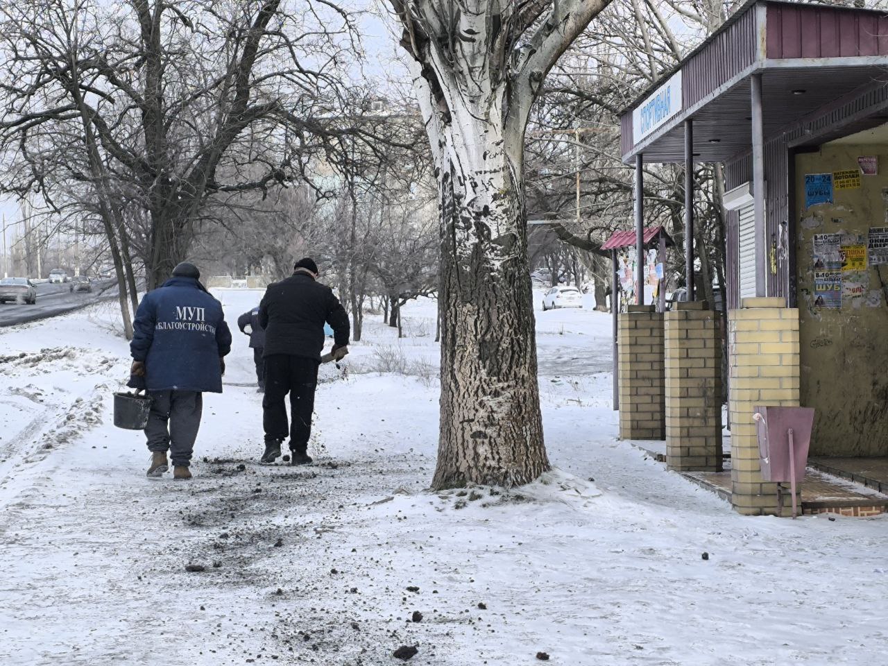 МБУ "Благоустройство" администрации города Тореза выполняют работы по посыпке тротуаров на территории городского округа Торез