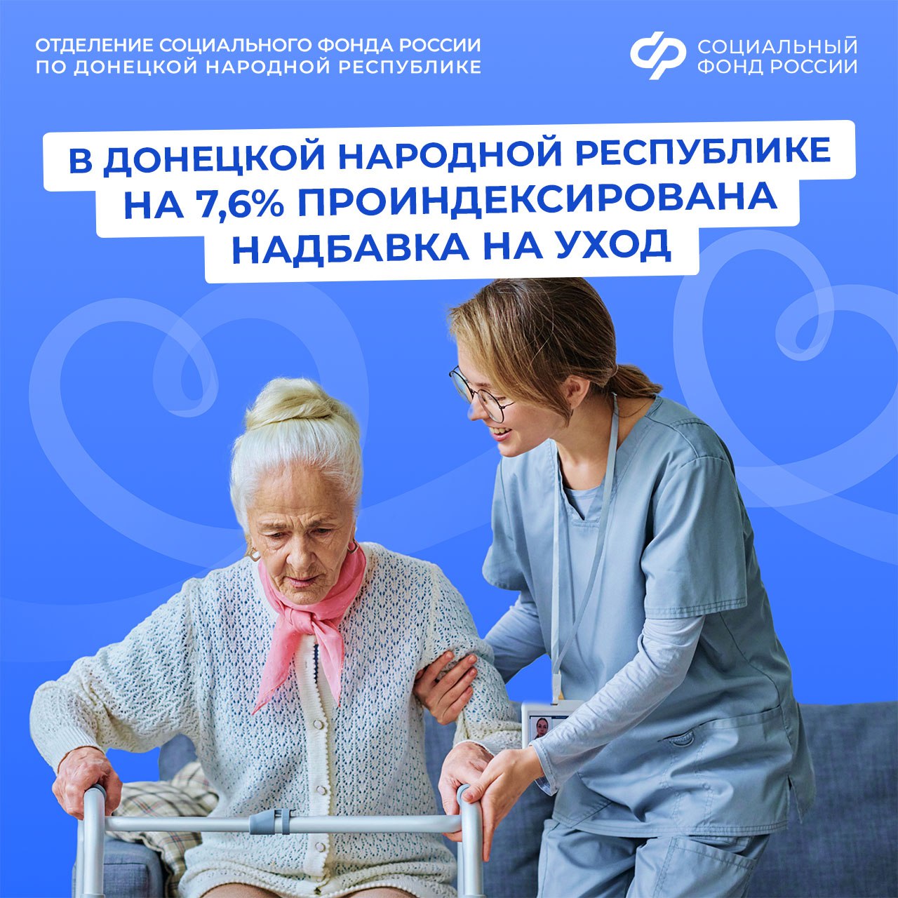 С 1 января 2026 года надбавка на уход гражданам из Донецкой Народной Республики, достигшим 80 лет или имеющим I группу инвалидности, проиндексирована на 7,6%.