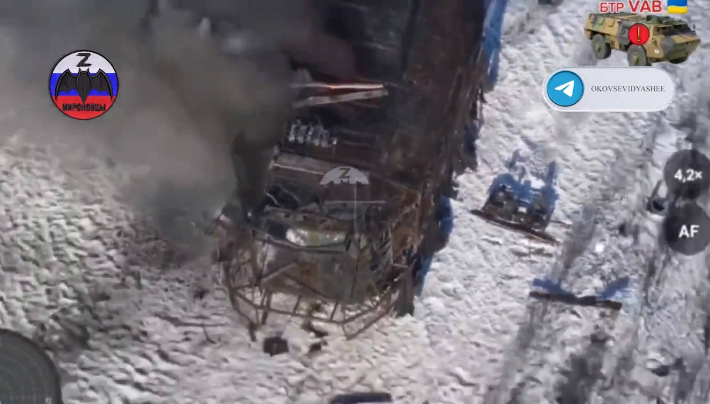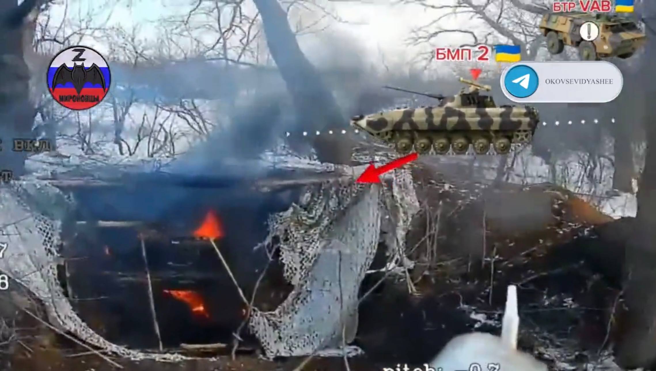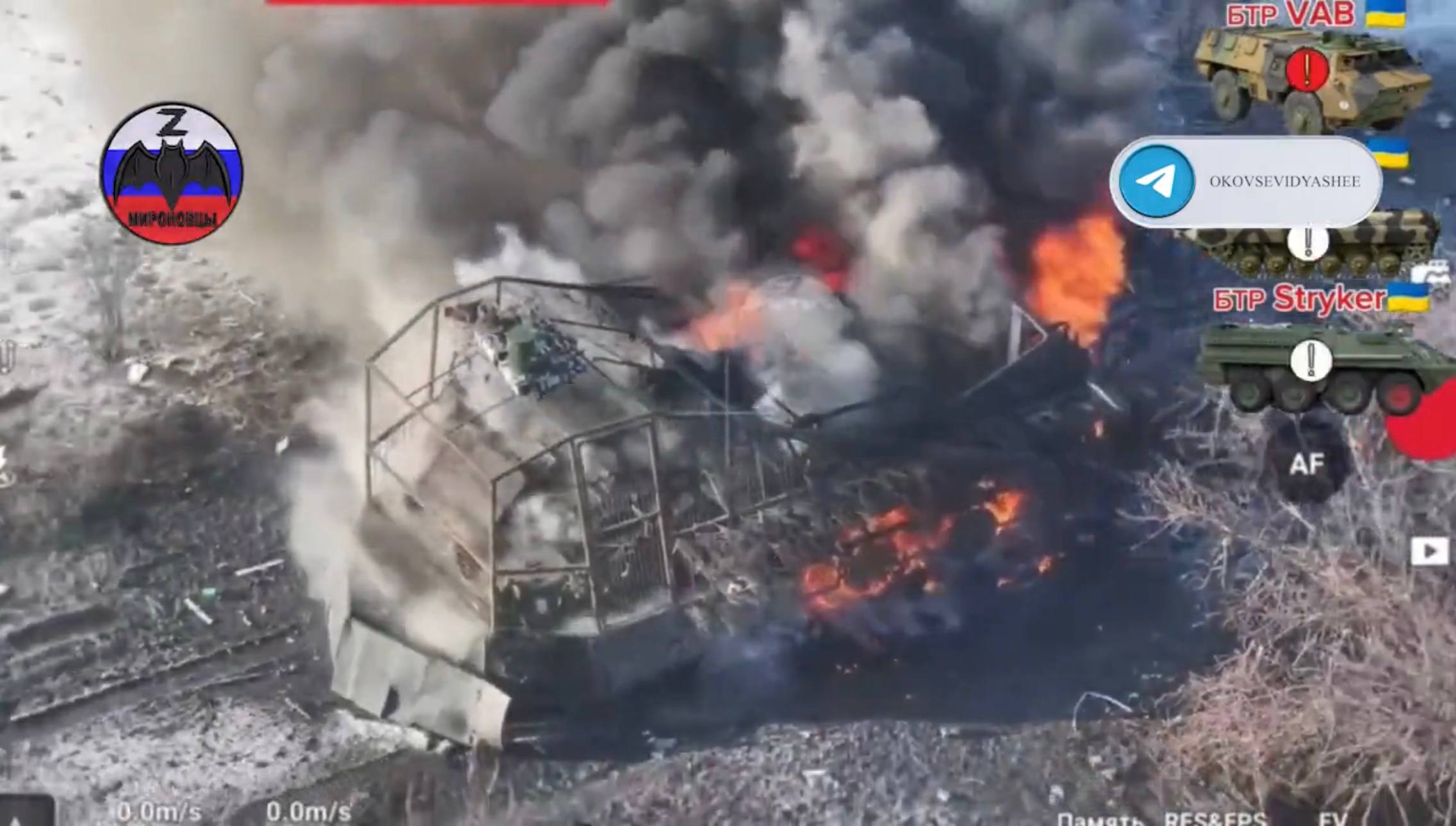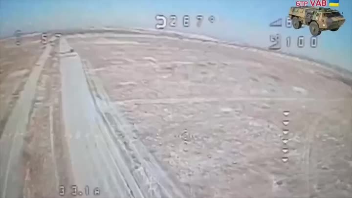 Уничтожение бронетранспортёра VAB, БМП-2 и M1126 Stryker ВСУ в районе сёл Кривая Лука и Каленики Краматорского района ДНР. Кадры: @okovsevidyashee
