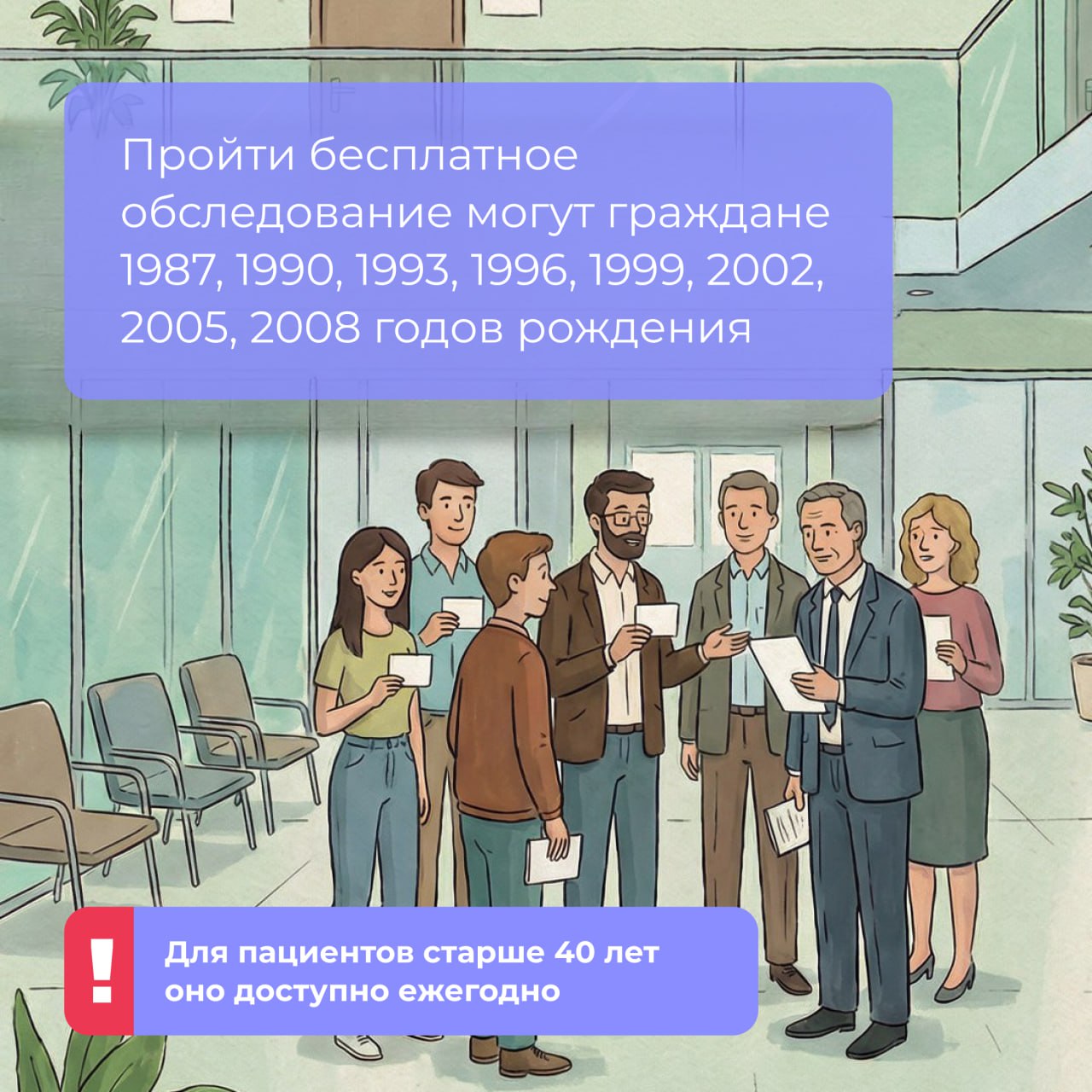 В карточках — вся информация: какие года рождения попадают, какие анализы вас ждут и как быстро понять, что пора к врачу (даже если день рождения еще не скоро).