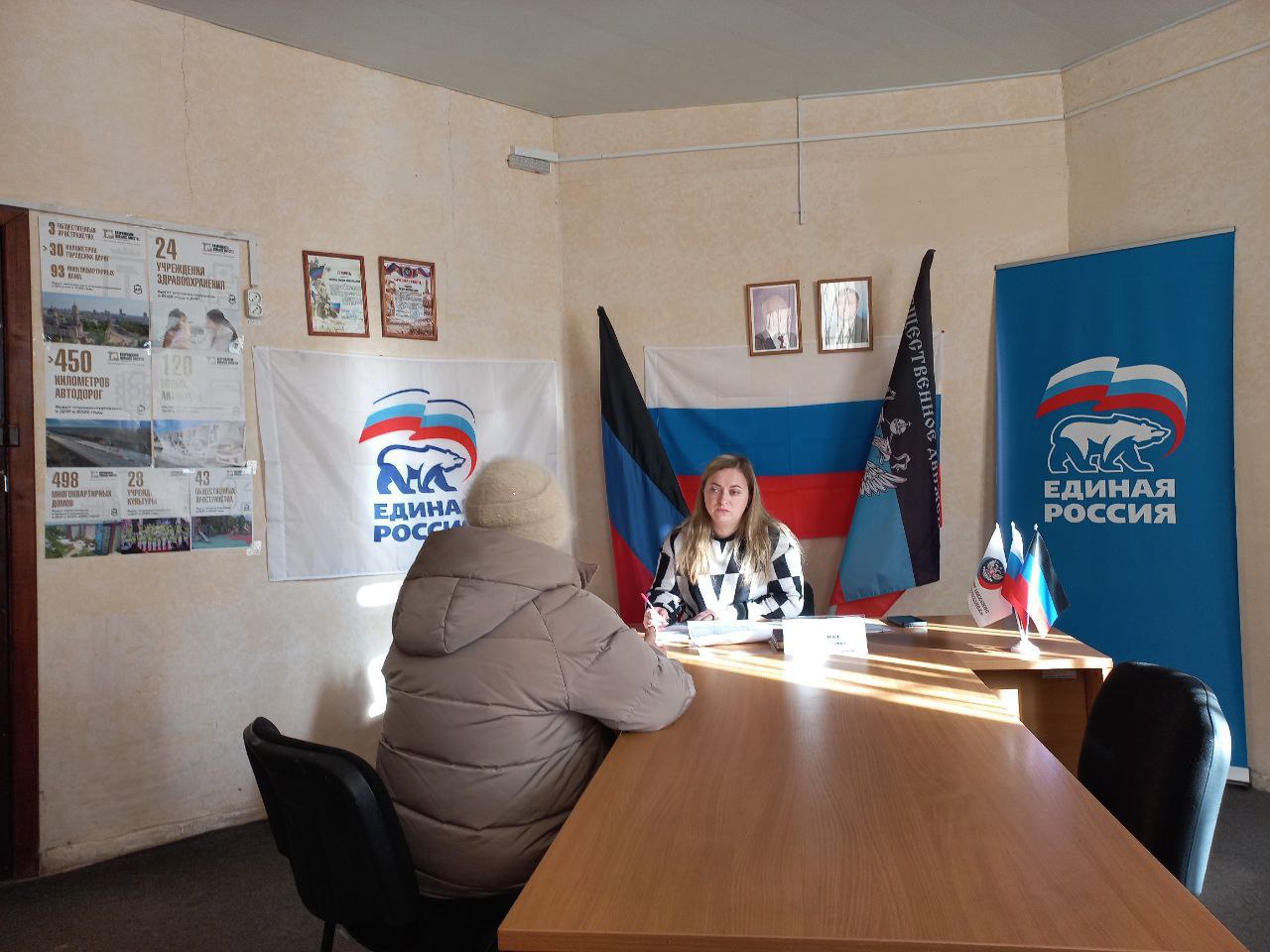 Сегодня, 10 февраля, депутат Макеевского городского совета Донецкой Народной Республики первого созыва Алена Трякина провела прием граждан в общественной приемной партии «Единая Россия» Советского внутригородского района городского округа Макеевка.