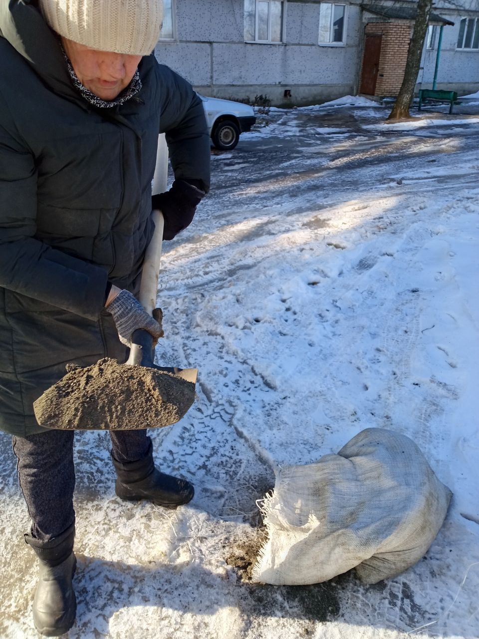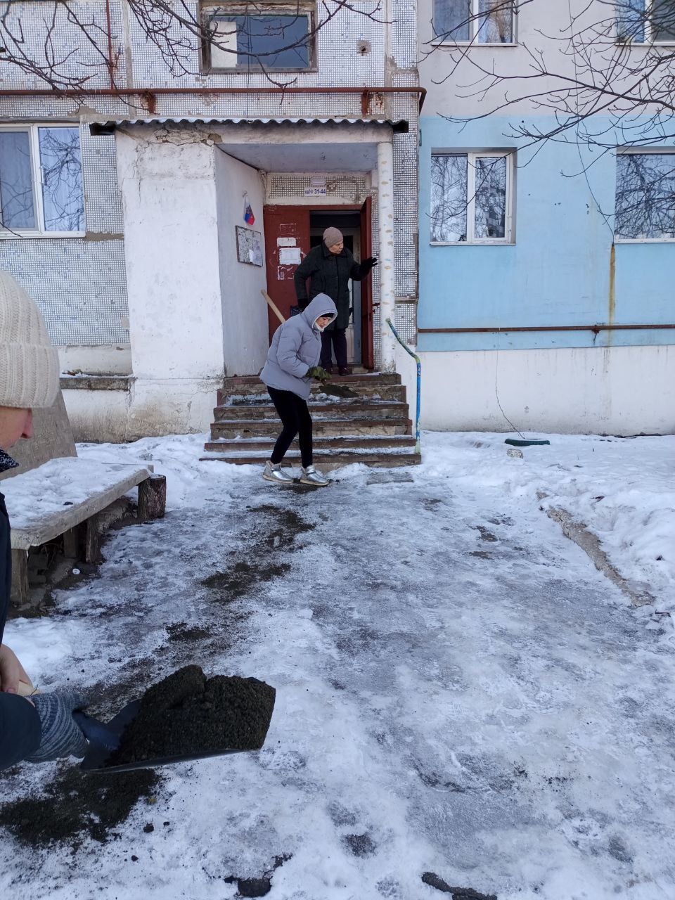 В рамках партийного проекта Единой России "Городская среда" сотрудники МКУ "Жилищно-коммунальное хозяйство и благоустройство" продолжают посыпать внутридворовые участки возле многоквартирных домов с целью безопасного передвижения жителей.
