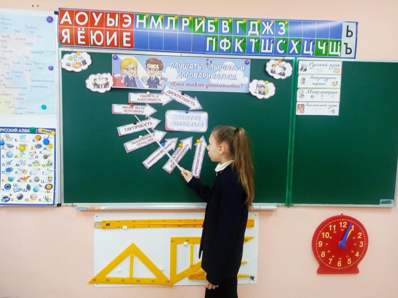 В жизни каждого человека бывают ситуации, когда нужно решать сложные вопросы. Иногда такие вопросы касаются дружбы, учёбы, семьи, а иногда — целых стран. В таких ситуациях особенно важно уметь разговаривать друг с другом спокойно и уважительно. Именно такую работу выполняют дипломаты, люди, от которых зависит многое, если не сказать -всё! В ГБОУ «Светлодарский УВК» состоялось традиционное занятие из цикла внеурочной деятельности «Разговоры о важном» на тему «Слушать, слышать и договариваться. Кто такие дипломаты?». Ребята начальных классов познакомились с ролью дипломатии как ключевого инструмента международных отношений и государственной службы. Они узнали о принципах конструктивного взаимодействия, эффективной коммуникации и умении вести диалог с уважением и ответственностью. В ходе беседы также были рассмотрены качества, которые должен иметь каждый дипломат.