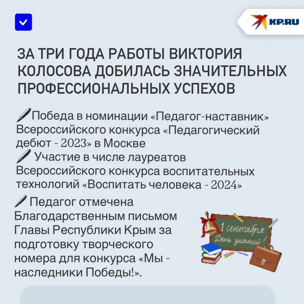 Одним из ярких примеров профессионализма и преданности педагогическому делу является Виктория Колосова - советник директора по воспитанию лицея №4 «Элит» города Горловки.