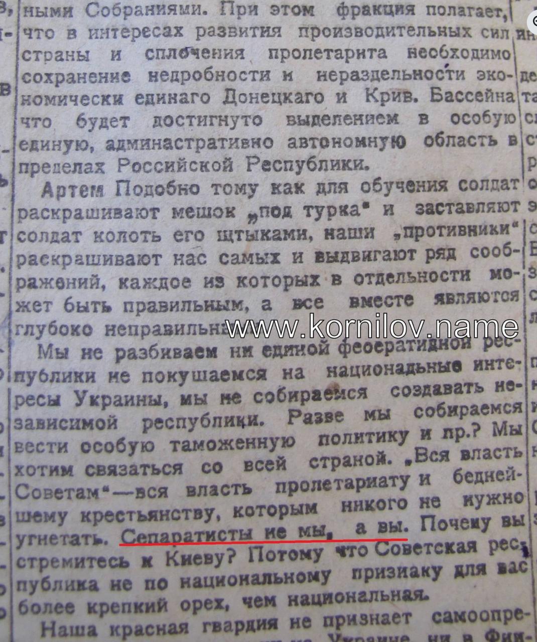 Именно потому лидер республики Артем-Сергеев и подчеркнул, отвечая на нападки украинских национал-большевиков: «Сепаратисты не мы, а вы!»