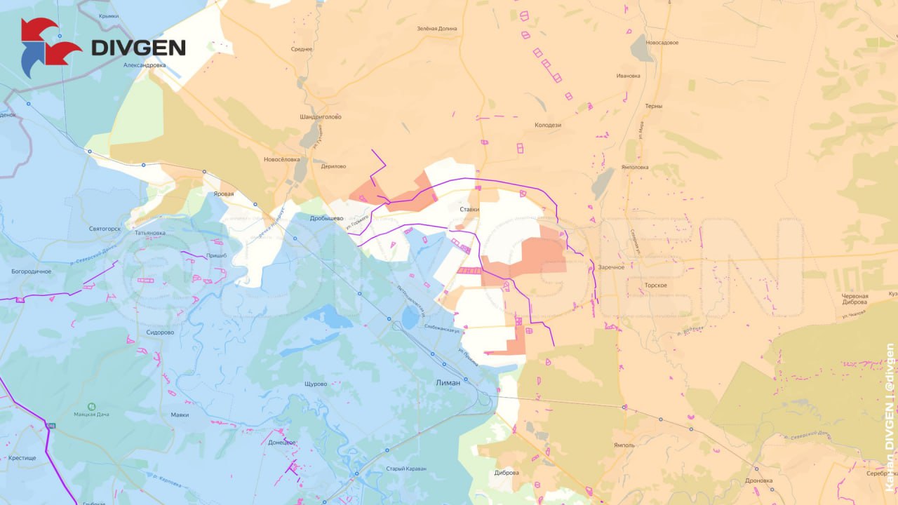 Продвижение российской армии по направлению к Красному Лиману публикует ТГ-канал "DIVGEN".