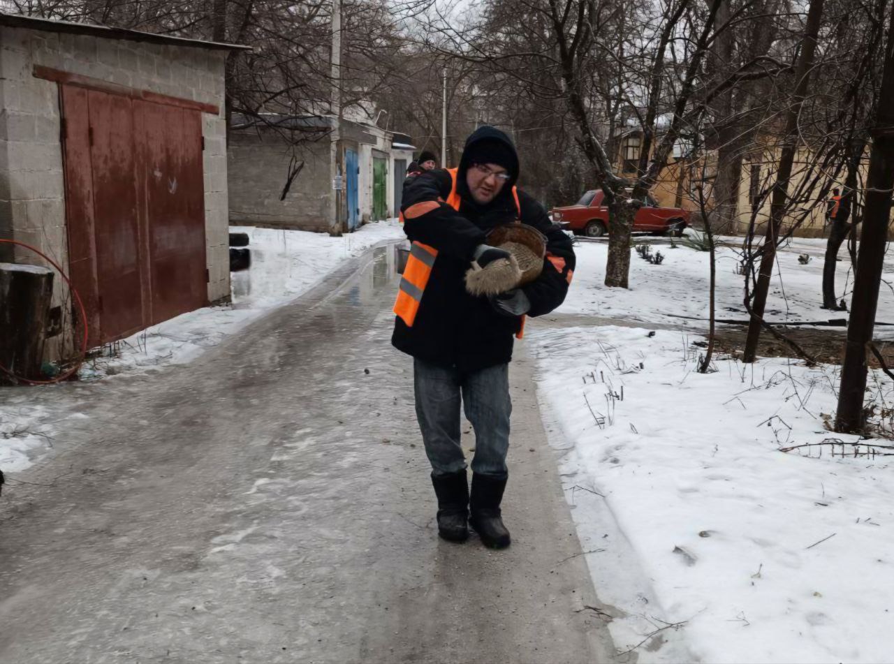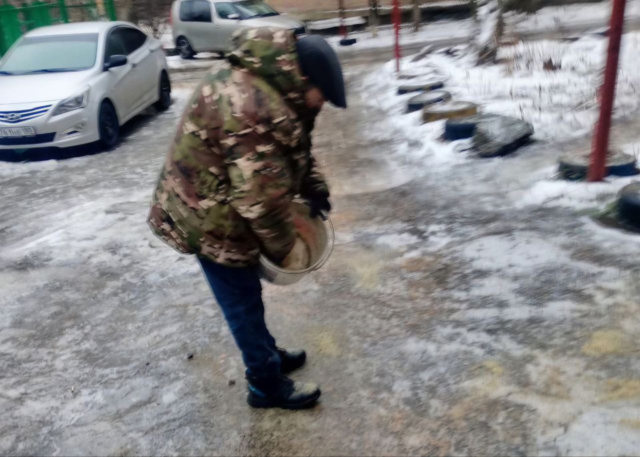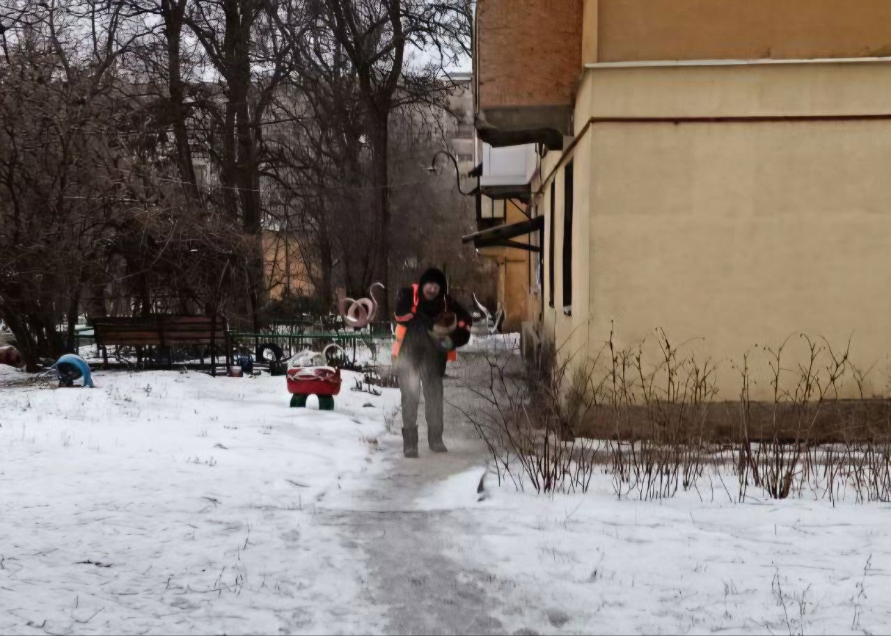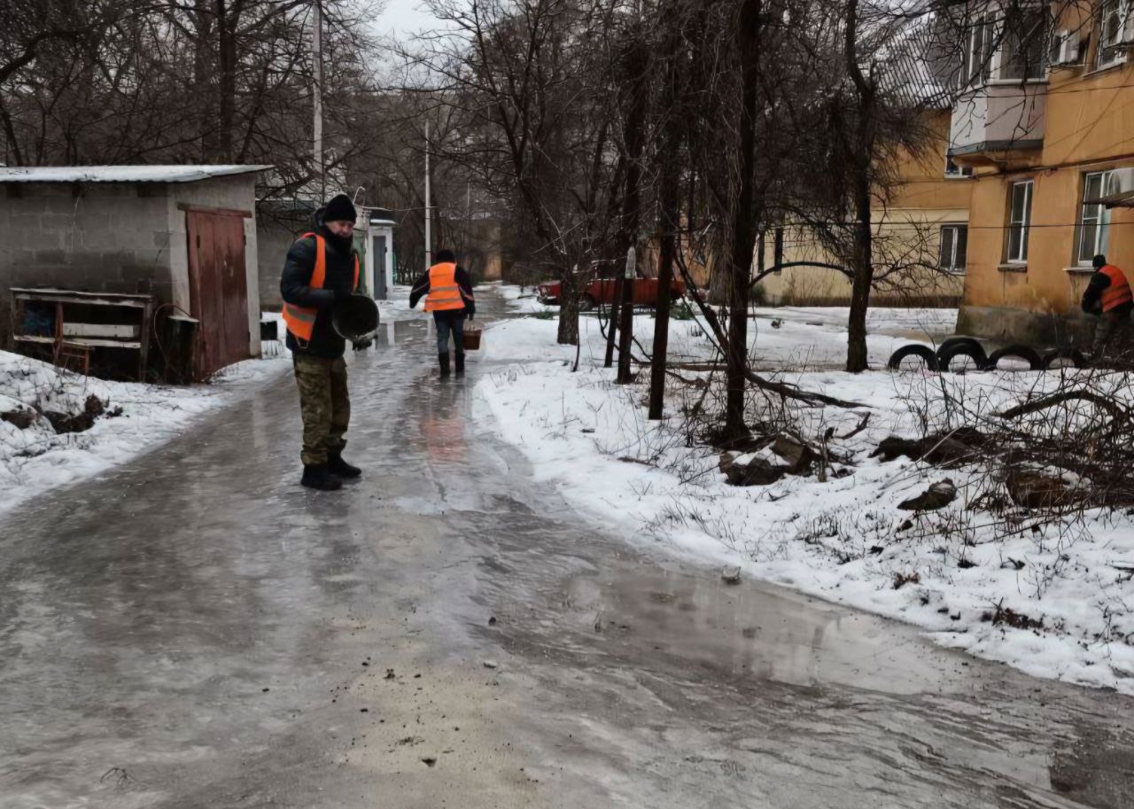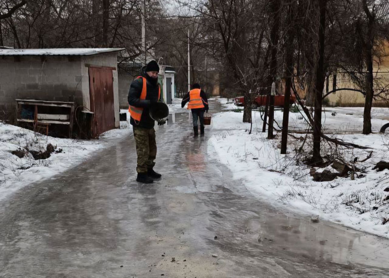 Иван Адамец: Коммунальные службы Куйбышевского района с утра ведут активную борьбу с гололёдом, обрабатывая территории песчано-солевой смесью