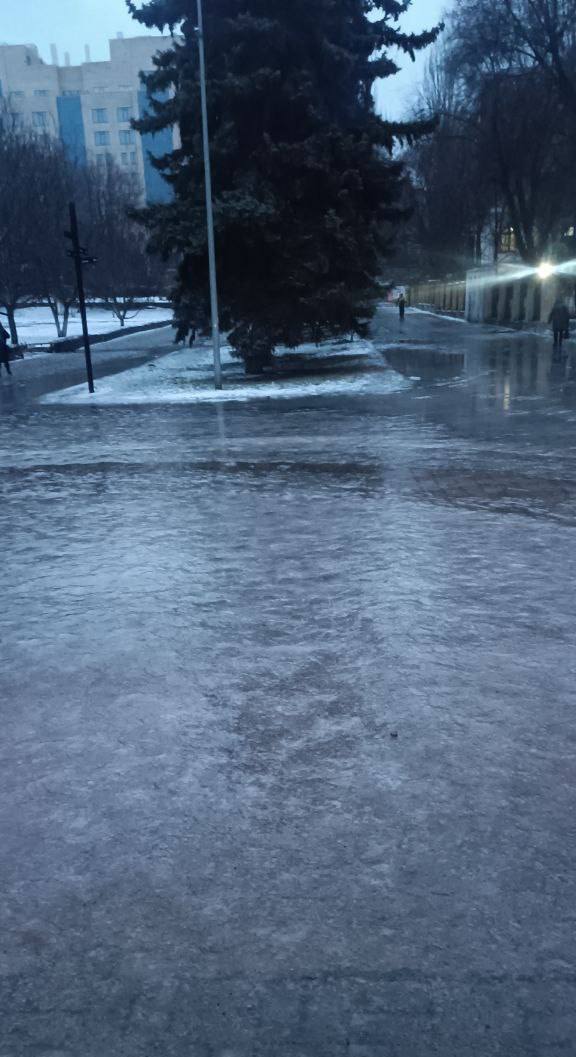 На дорогах ДНР везде сильный гололед. Машины застревают во дворах. На трассах также опасно.