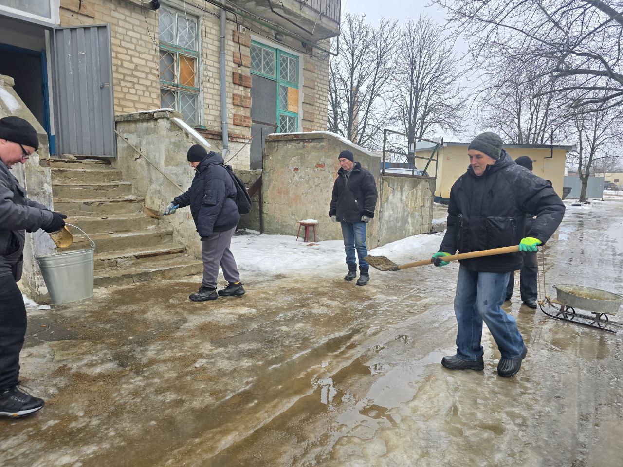 Кроме того, Докучаевский участок Волновахского филиала Единого регионального фонда по Управлению многоквартирными домами на территории ДНР проводит работы по посыпке придомовых территорий. В этих мероприятиях принимают участие 12 человек.