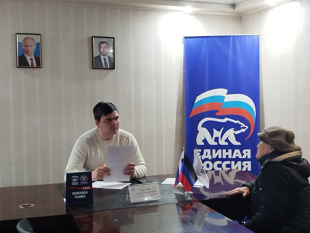 Сегодня, 13 февраля, Глава администрации городского округа Торез Артём Чесноков провел прием граждан в Общественной приемной партии «Единая Россия».