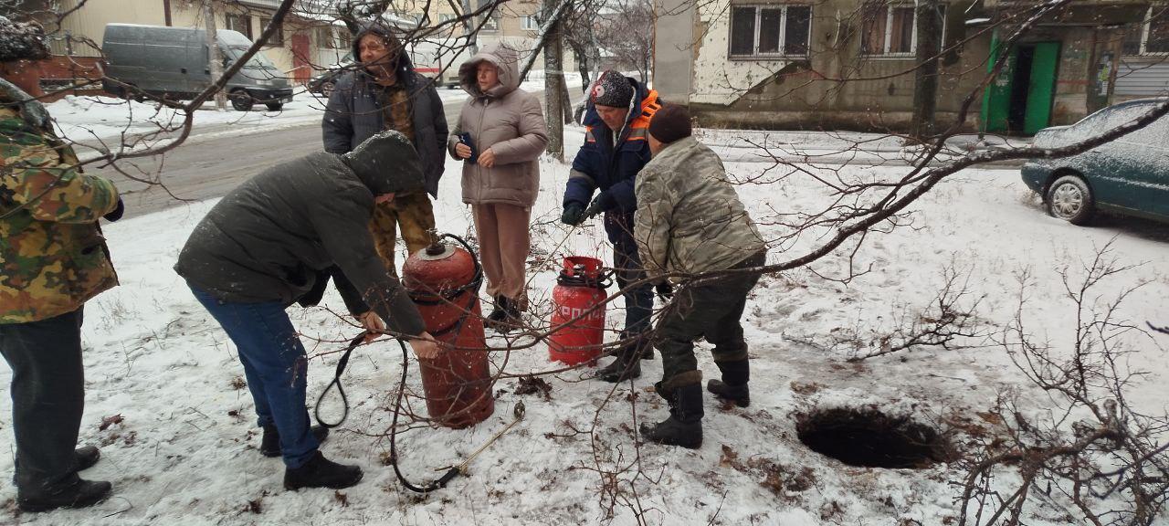 На улице Коммунистической в Дебальцево бригада из Хабаровского края комплексно разморозила участки трубопровода
