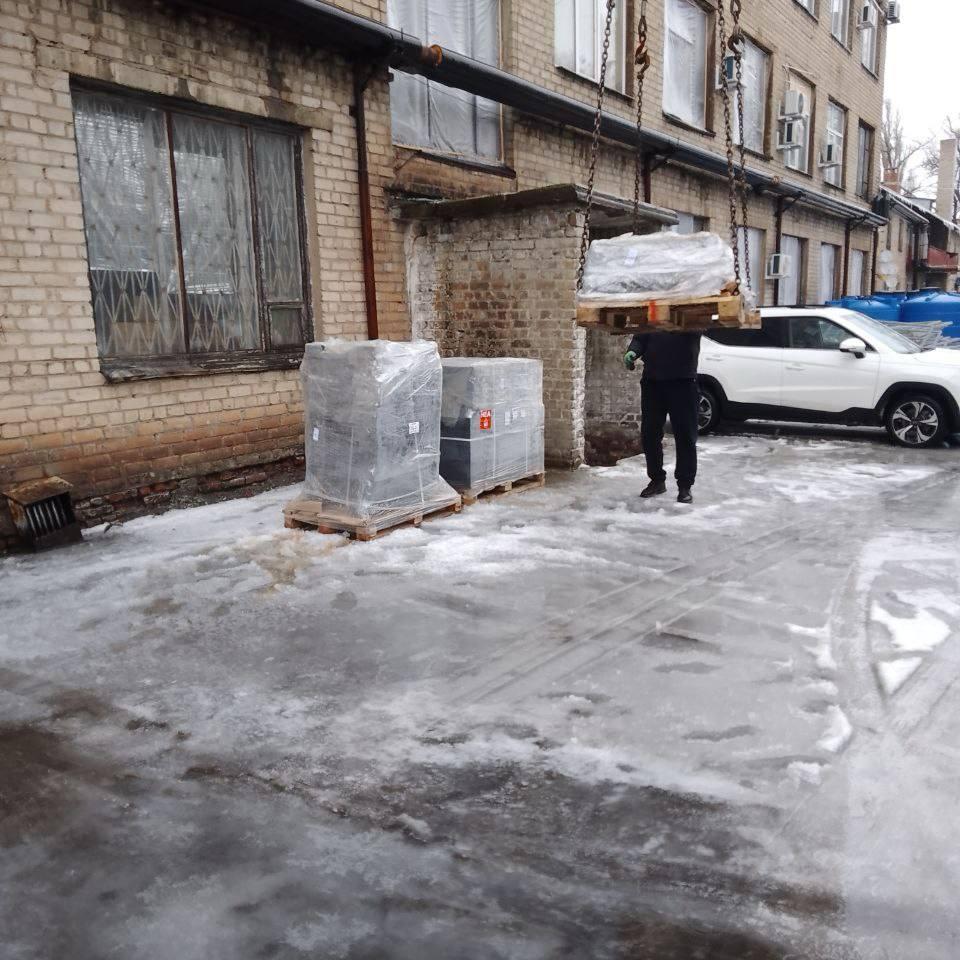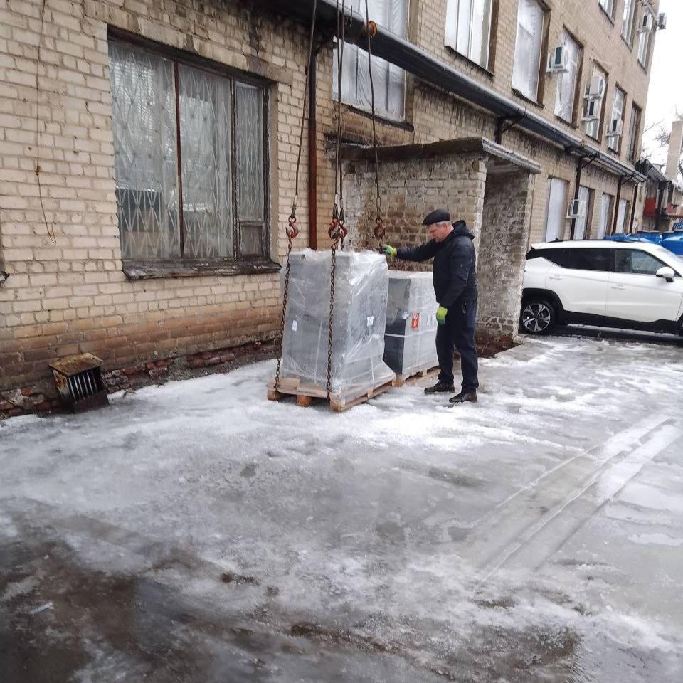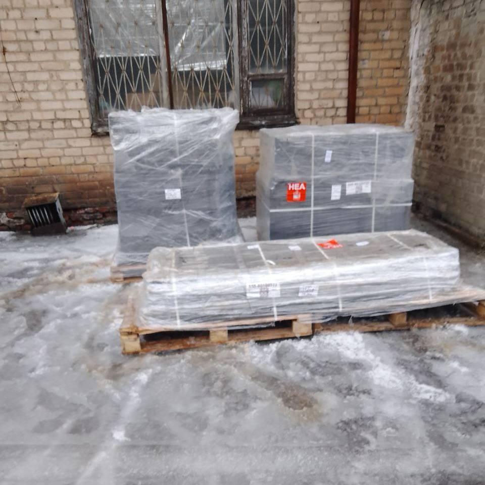 В подшефный город завезли 10 комплектов скамеек и урн для выполнения работ по благоустройству сквера перед зданием администрации г. Дебальцево на Центральной площади.