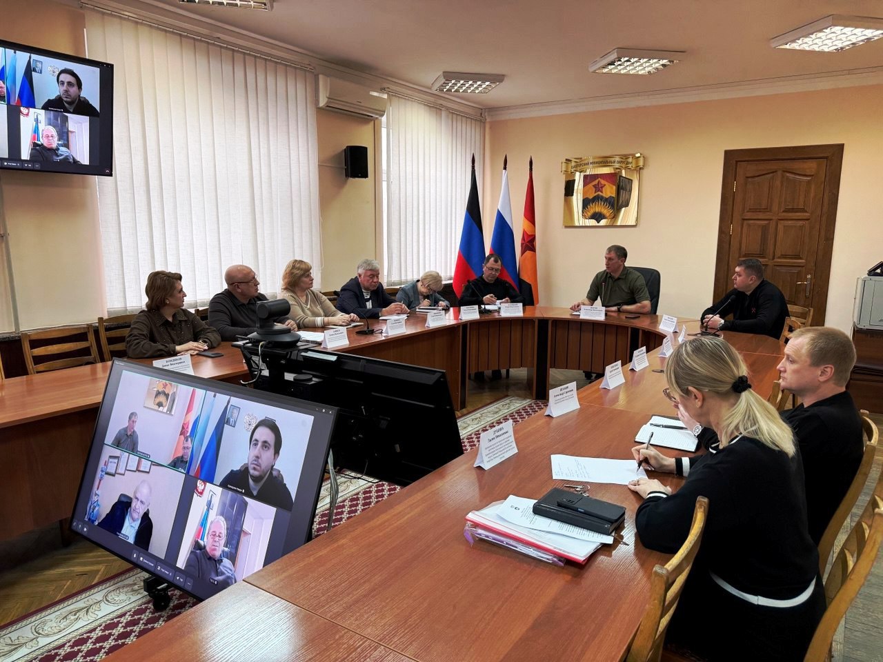 В заседании Штаба приняли участие: депутат Народного Совета ДНР Сергей Михалев, председатель Шахтерского муниципального совета Ольга Катанцева, заместитель главы администрации округа, депутаты муниципального совета, представители общественного совета и главврачи медучреждений округа.