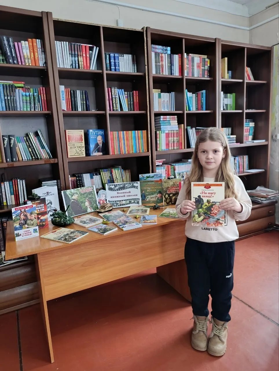 А также вниманию читателей представлена книжная выставка с элементами военной техники «Военный книжный эшелон», отражающая мужество, честь, отвагу сильной половины человечества.