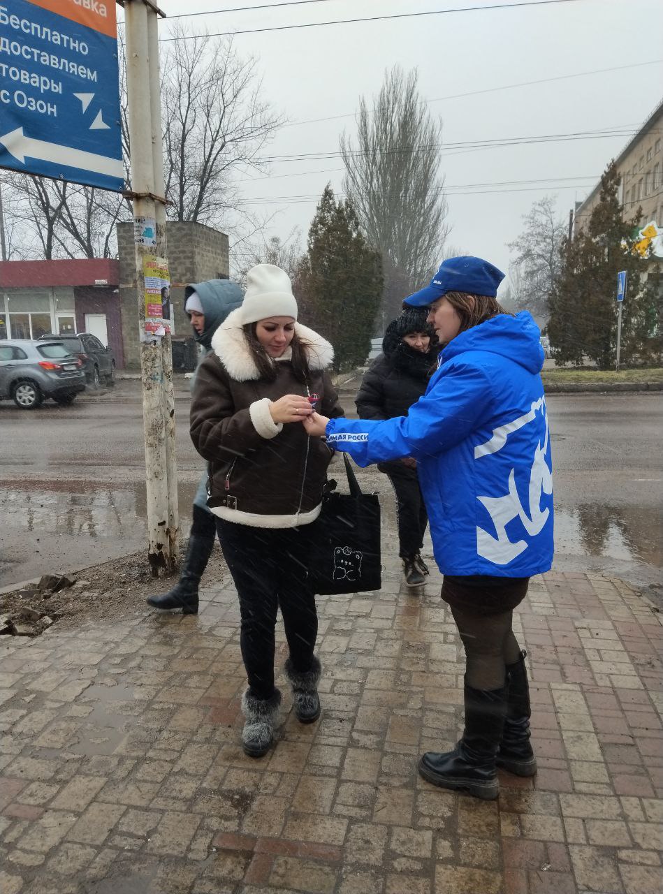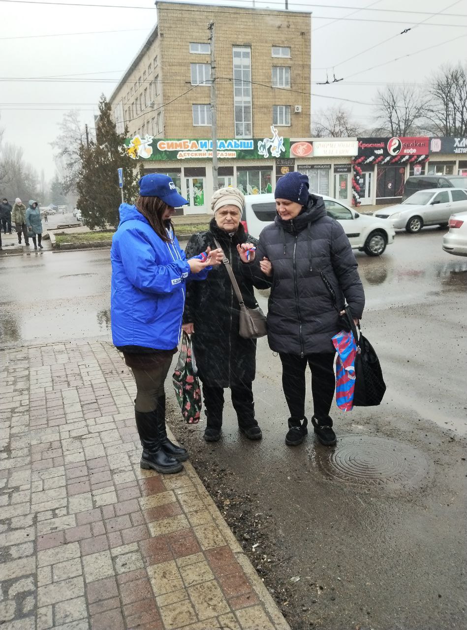 В ходе акции активисты местного отделения партии «Единая Россия» Червоногвардейского района вручили жителям и гостям района нагрудные бантики, выполненные в цветах флагов Донецкой Народной Республики и Российской Федерации, которые стали важным символом дружбы и единения России и Донбасса, отражая стремление к совместному будущему и взаимопониманию.