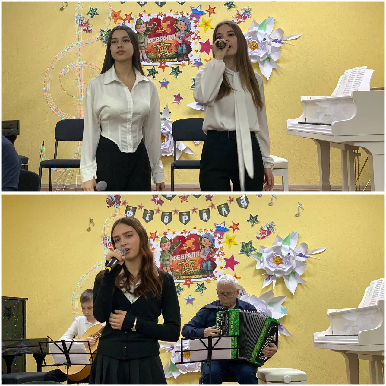 Праздничная программа состояла из чтения стихотворений, музыкальных номеров солистов и творческих коллективов учащихся и преподавателей школы. Мероприятие оставило яркие впечатления и укрепило веру в непоколебимость нашего Отечества. Оно стало возможностью выразить благодарность всем защитникам Отечества, подарив им частичку тепла и заботы, объединив поколения и подчеркнув ценность традиций.