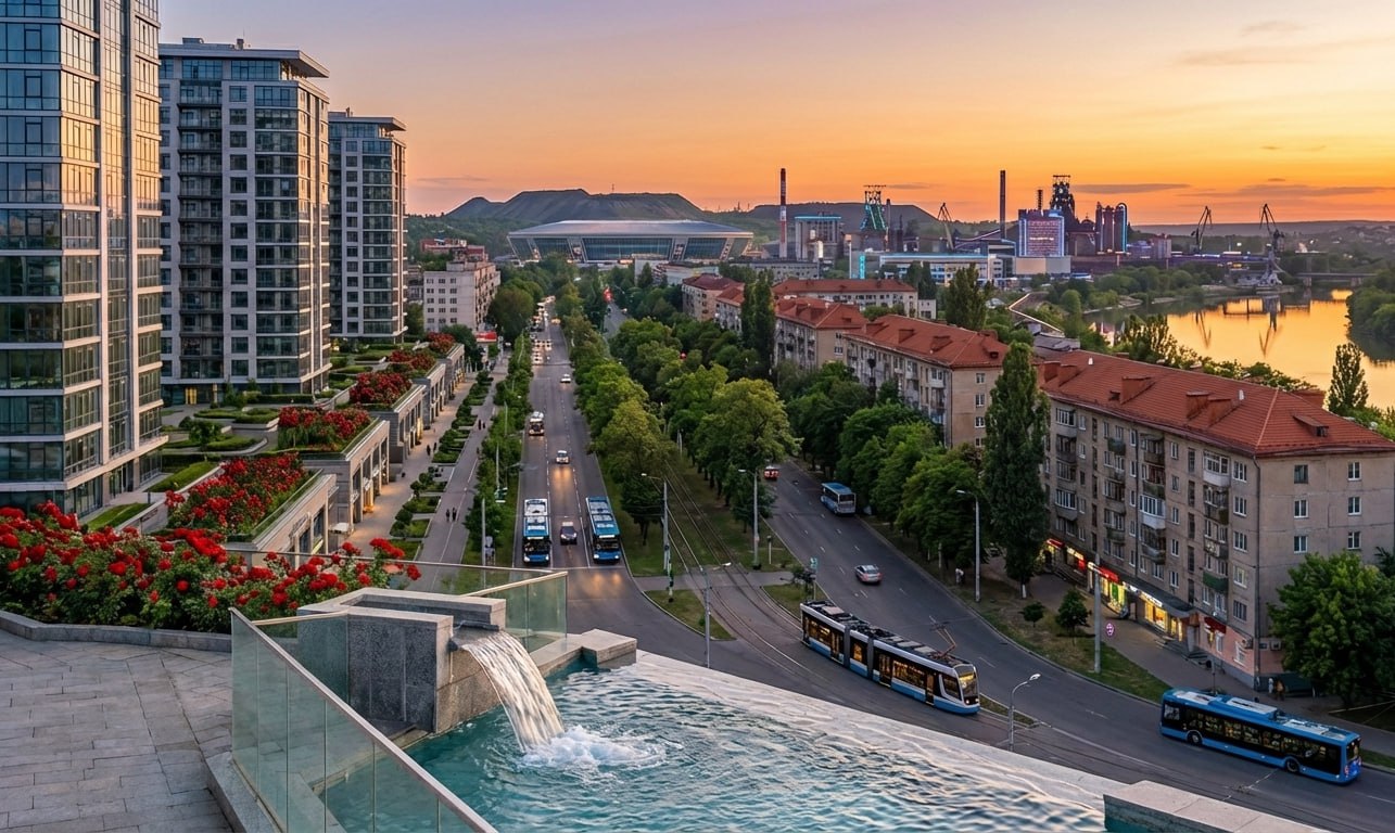 Через 15 лет в кране будет нормальная вода, новые микрорайоны с современными домами и закрытыми дворами, а транспорт — электробусы и электрички до Мариуполя. Экономика перейдет на строительство, модернизированную металлургию и автоматизированные производства, где зарплаты промышленных рабочих будут заметно выше офисных.