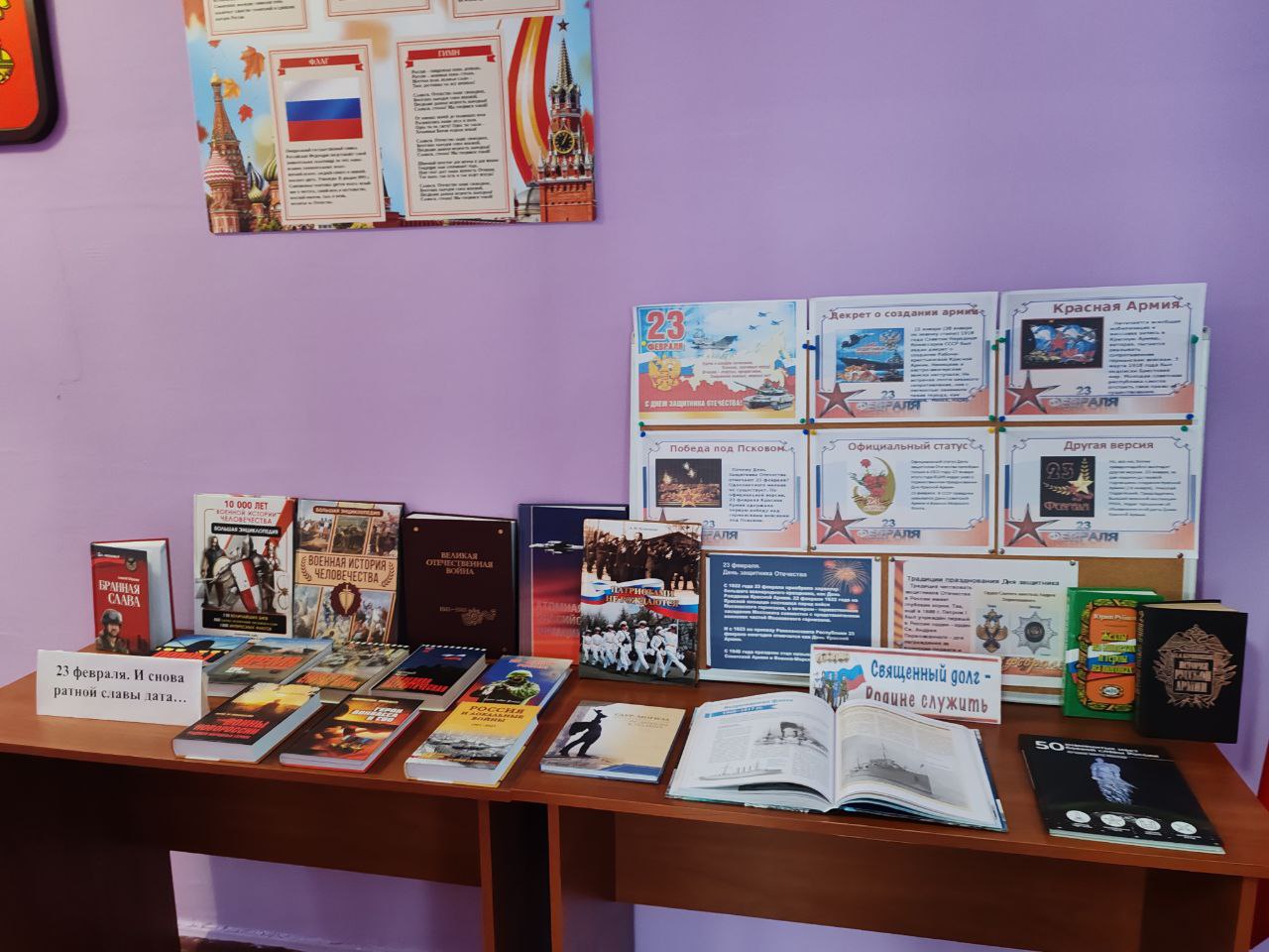 23 февраля День воинской славы России-День защитника Отечества. Дата была выбрана потому, что 23 февраля 1918 года, отряды Красной гвардии одержали свои первые победы под Псковом и Нарвой над войсками кайзеровской Германии. Этот день и назначили «днем рождения Красной Армии». В 1922 году День Красной Армии стал официальным праздником, а потом в СССР его отмечали, как День Советской Армии и Военно-Морского Флота. В преддверии Дня защитника Отечества в Мироновской поселковой библиотеке оформлены выставка-поздравление и информационный стенд «23 февраля. И снова ратной славы дата…», которые знакомят посетителей с историей возникновения праздника. А книги выставки помогут совершить исторический экскурс в героическое прошлое, узнать о главных победах российских войск, которые сыграли решающую роль в истории Отечества.