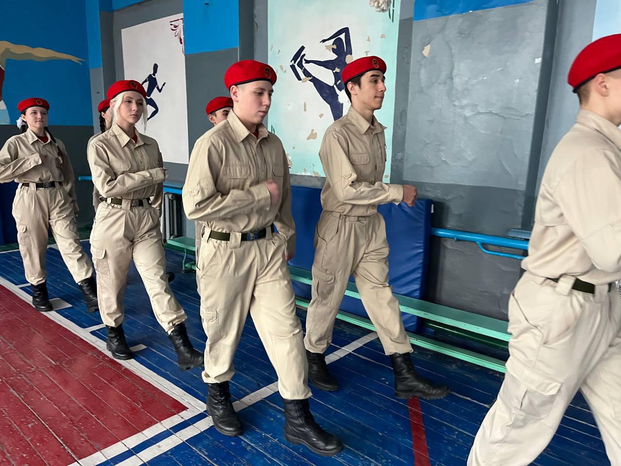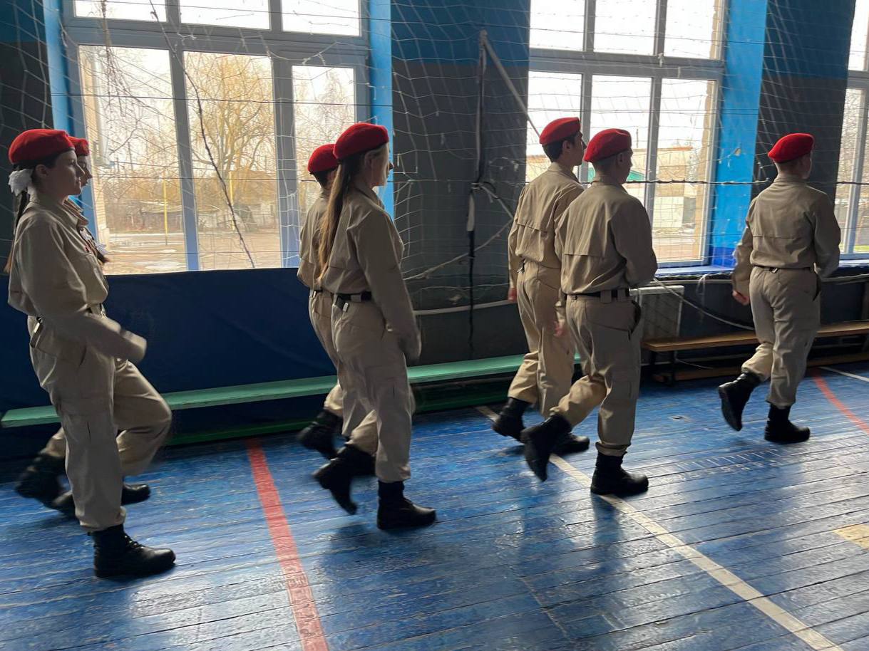 Юнармейцы отряда ВПК «Пламя» штаба местного отделения городского округа Харцызска СШ № 4, ученики из 9-А класса Матинян Михаил, Воробьев Сергей, Закаличный Никита, Бесчаснов Давид, Хропот Елизавета, Столика Дарья, Мокровуз Виктория провели занятие по строевой подготовке.