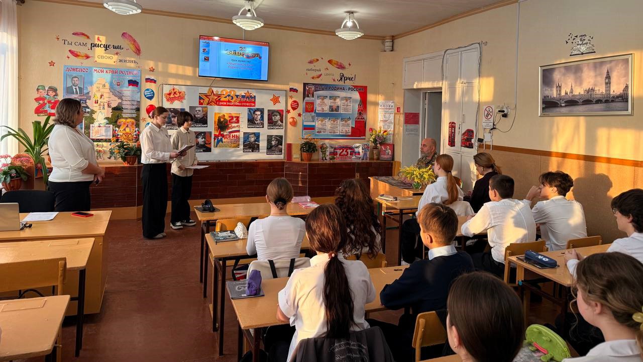 19 февраля в торезском лицее «Спектр» прошел урок патриотизма «Мы едины!». Почетным гостем мероприятия стал ветеран боевых действий Андрей Котов, который с искренностью и теплотой поделился своим личным опытом службы. Он подчеркнул значение единства народа как залог процветания страны и готовности каждого гражданина встать на защиту Родины в любой ситуации.
