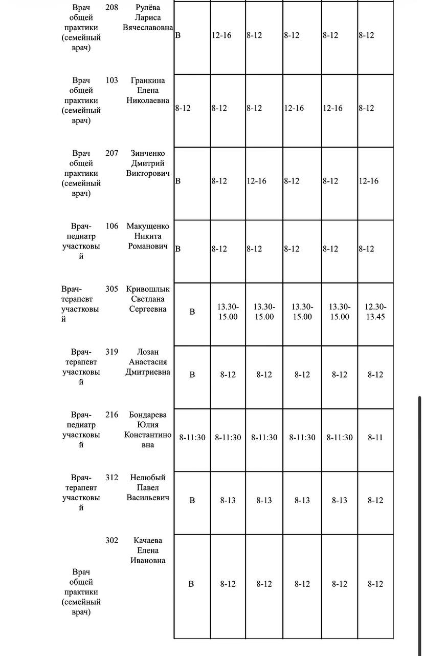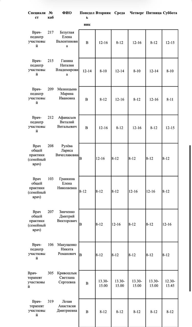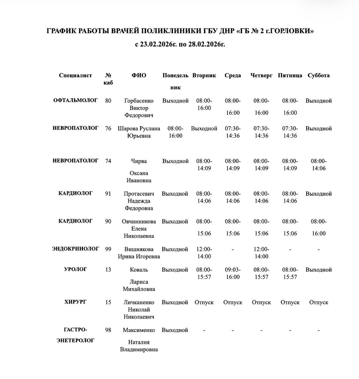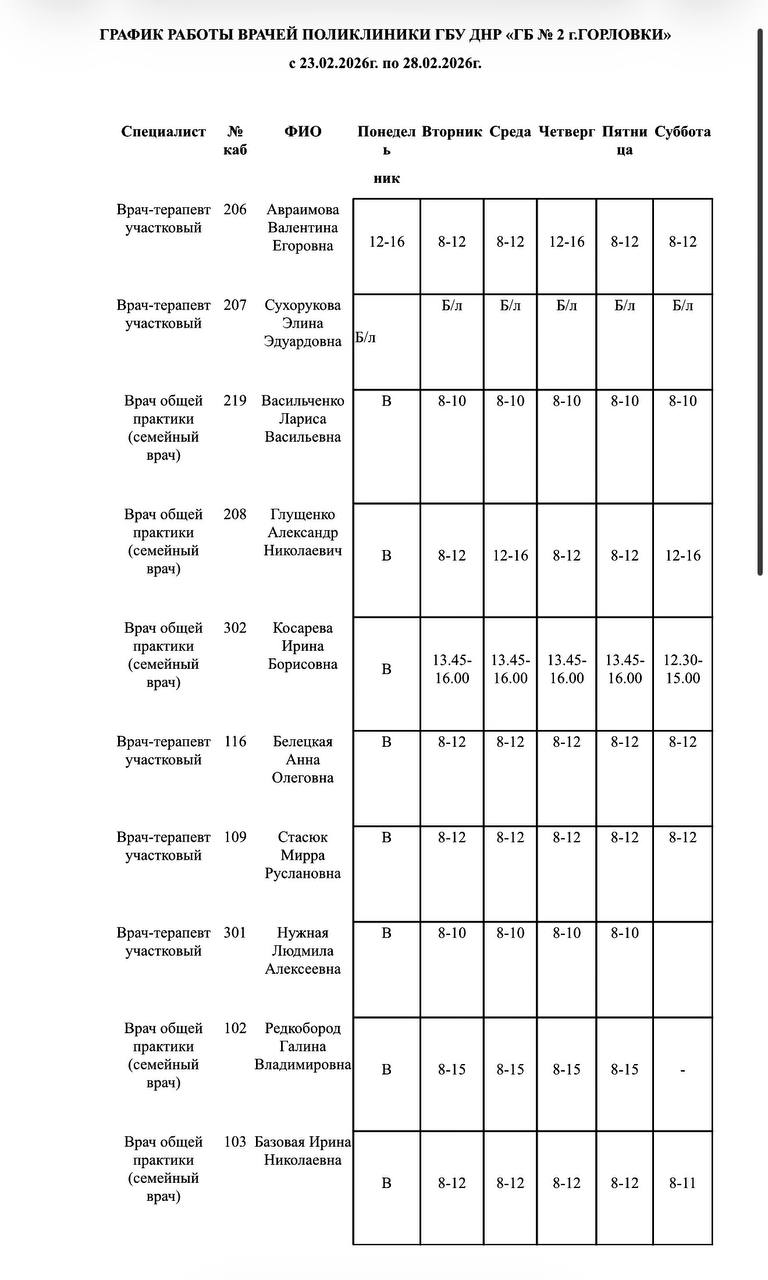 Иван Приходько: График работы специалистов ГБУ ДНР «Городская больница № 1 г. Горловки», ГБУ ДНР «Городская больница № 2 г. Горловки»
