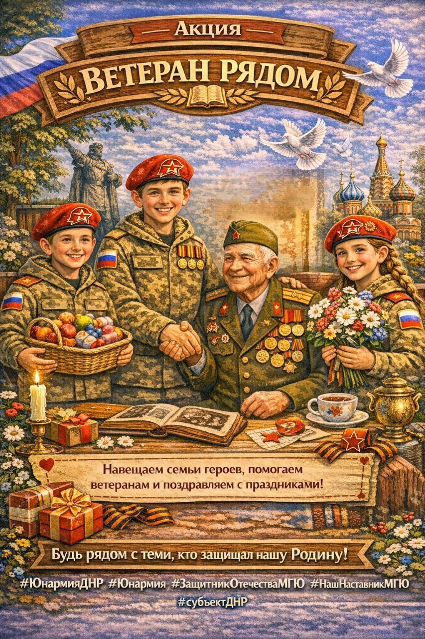 Юнармеец ВПК «Витязь» г. Донецка Иванов Иван принял участие в акции «Ветеран рядом», посетил ветерана..., поздравил с праздником…