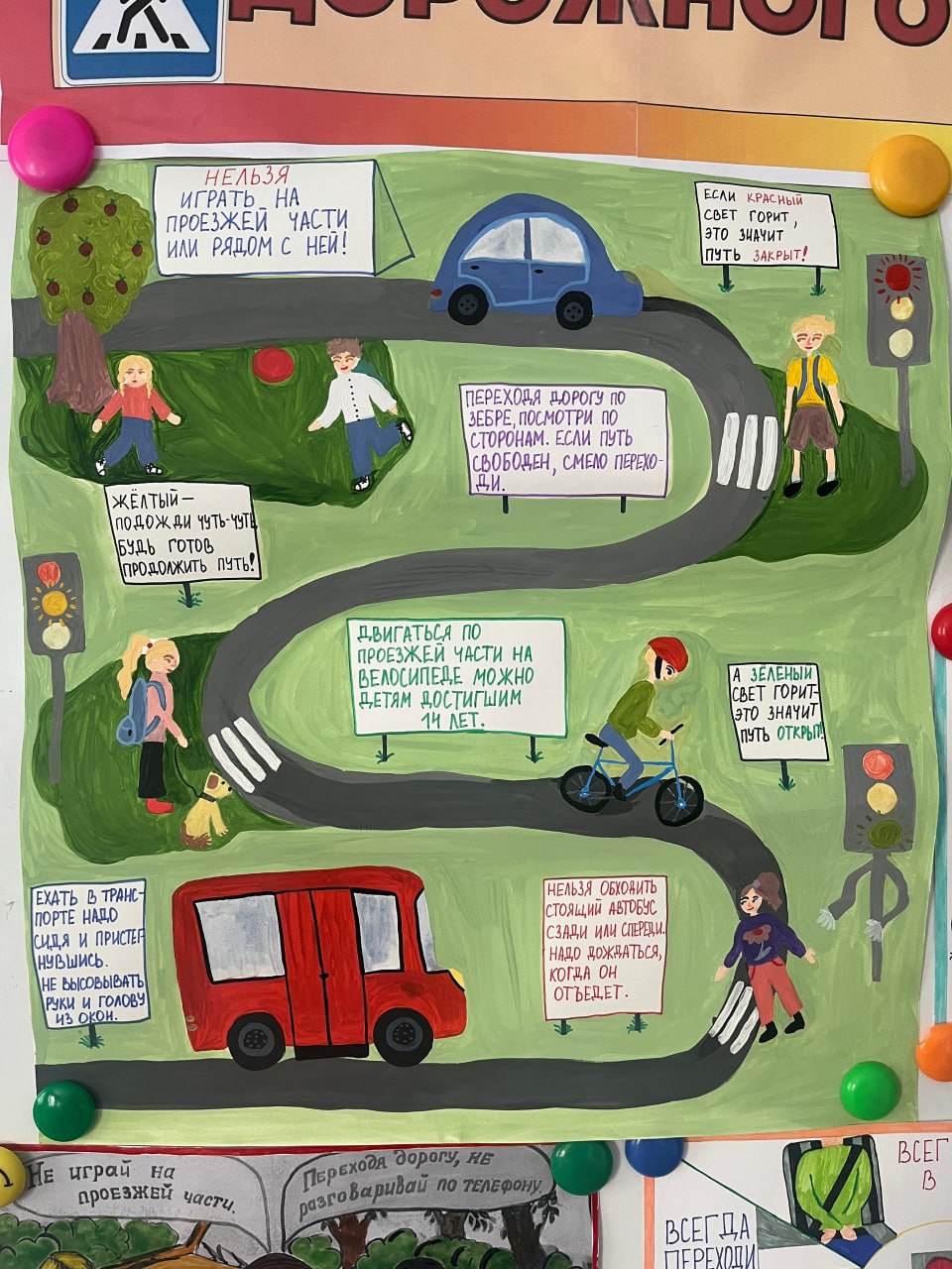 Ребята через творчество выразили своё видение безопасного поведения на дороге. Юные художники напомнили всем о важности понимания знаков дорожного движения, сигналов светофора и в целом правил дорожного движения для школьников.
