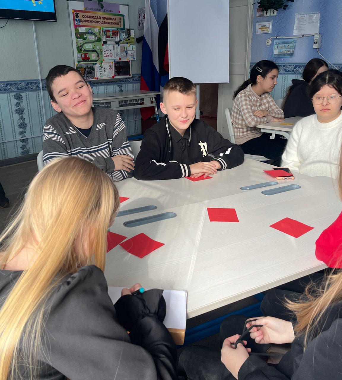 Ученики 5–9 классов сразились в интеллектуальной игре «Своя игра», отвечая на вопросы о дорожных знаках, видах транспорта и правилах для пешеходов. А финальным аккордом стало выступление школьной агитбригады ЮИД, которые в творческой форме призвали сверстников не забывать о безопасности.