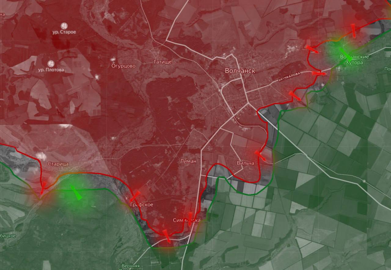 Продвижение ВС РФ также фиксируется на двух участках вблизи Старицы и в районе Волчанских Хуторов».