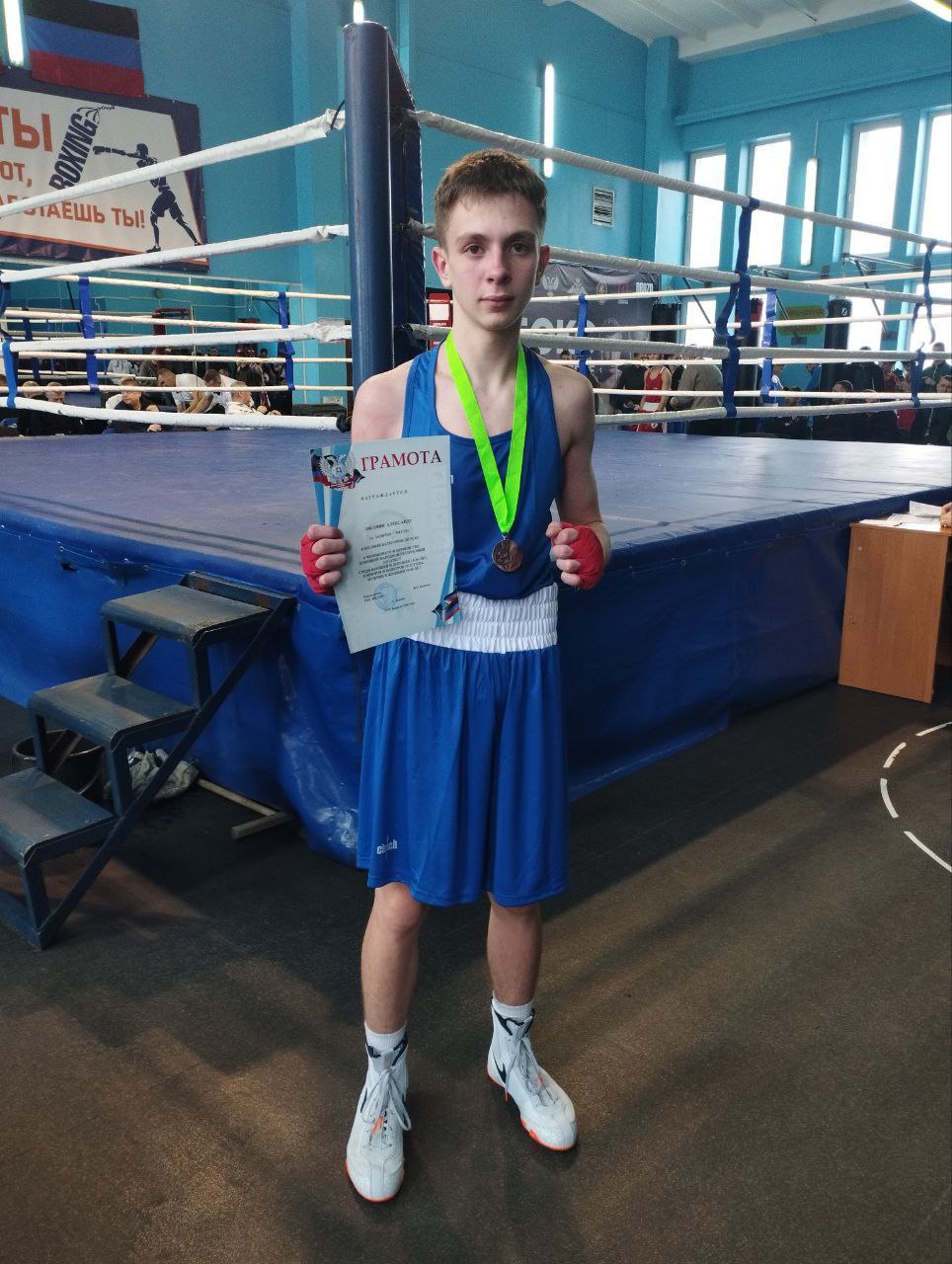 52,0 кг! Лисовин Александр! В первом бою уверенно разобрался со спортсменом из города Горловки Васильченко Евгением, но в полуфинале оступился и уступил решением судей спортсмену из Горловка Осадчиму Алексею. Результат третье место;