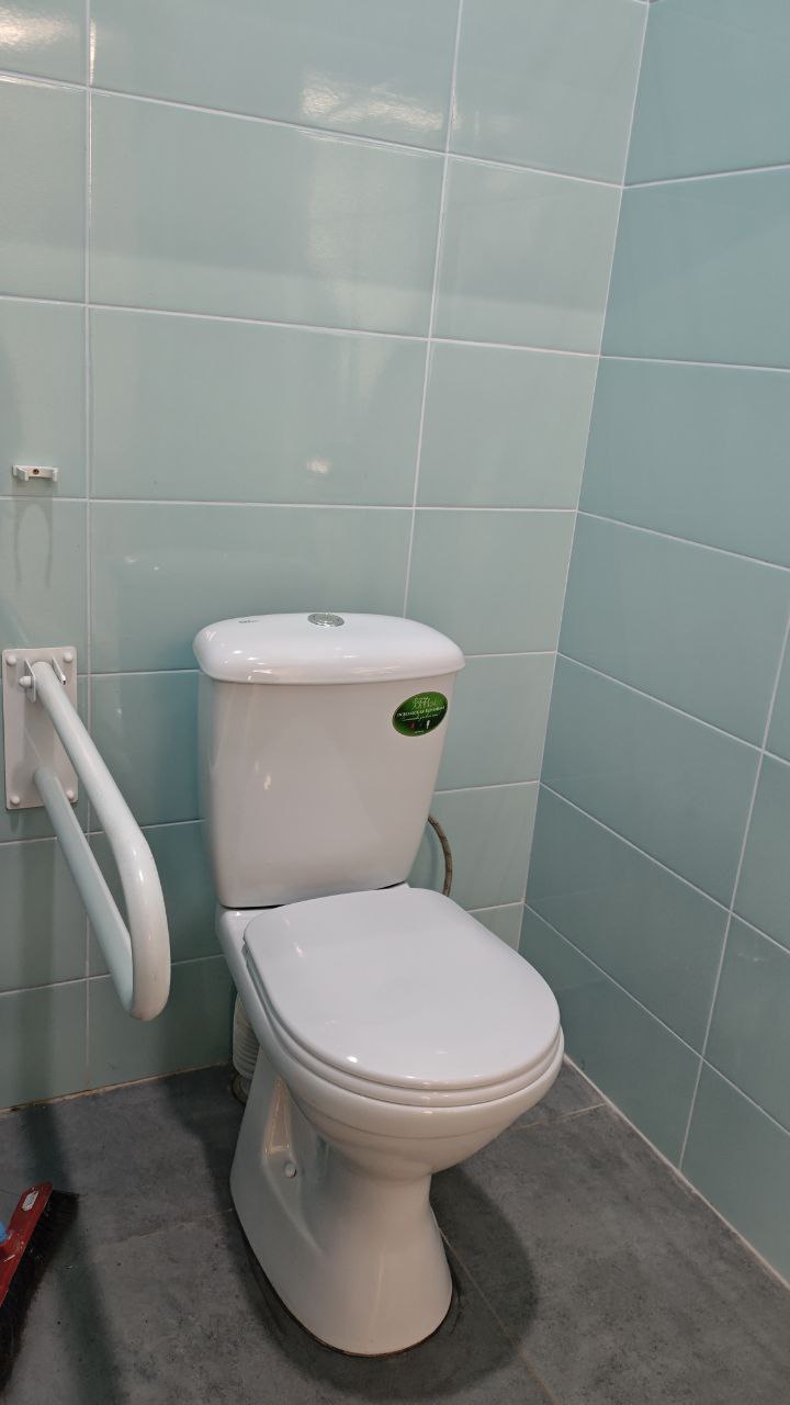 Санузел объекта обустроен специальными элементами, обеспечивающими комфортное использование помещений лицами с ограниченными возможностями здоровья. В частности, установлены прочные стационарные поручни, закреплённые вдоль стен возле унитаза, облегчающие передвижение и поддержание равновесия.