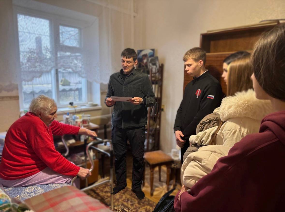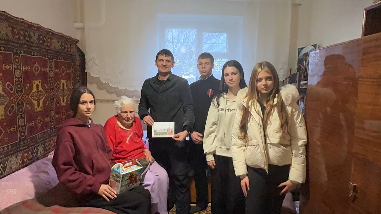 В рамках проекта «Старшее поколение» в гости к Варваре Григорьевне Возиановой— участнице Великой Отечественной войны, отметившей своё 95-летие, пришли активист Мелекинского первичного отделения партии «Единая Россия», заведующий сектором молодёжной политики Администрации Мангушского муниципального округа Руслан Александрович Пономаренко, активная молодёжь и представители общественной организации "Народная Дружина".