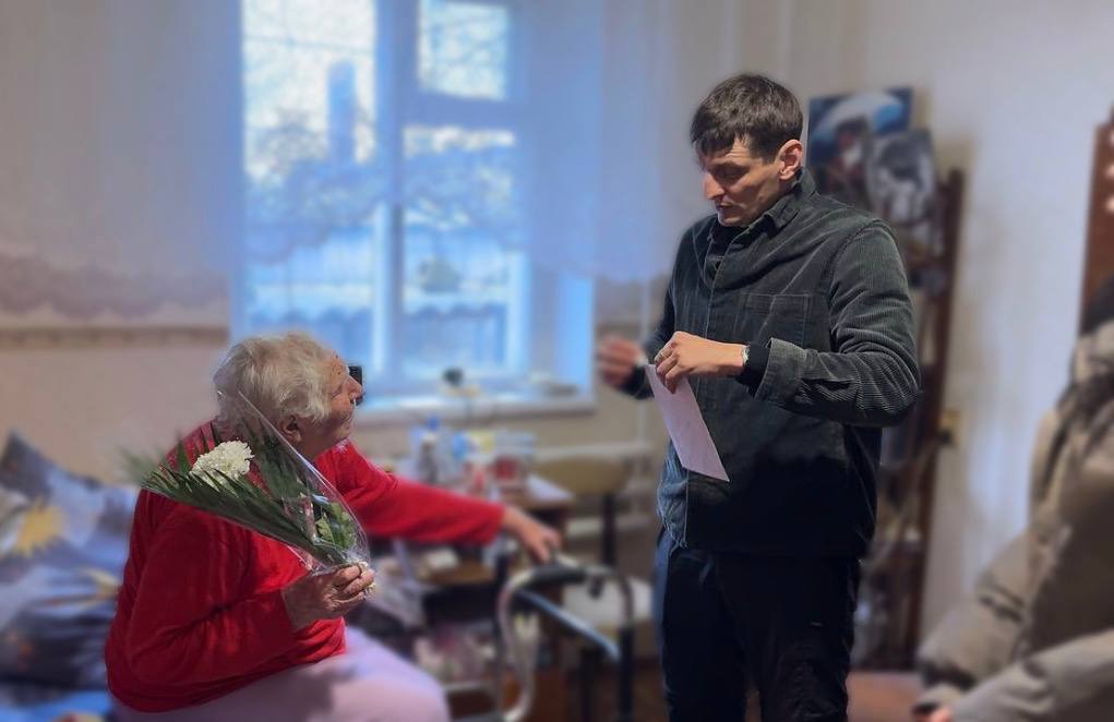 Руслан Александрович вручил долгожительнице нашего округа поздравительную открытку от имени Президента Российской Федерации Владимира Путина с пожеланиями.