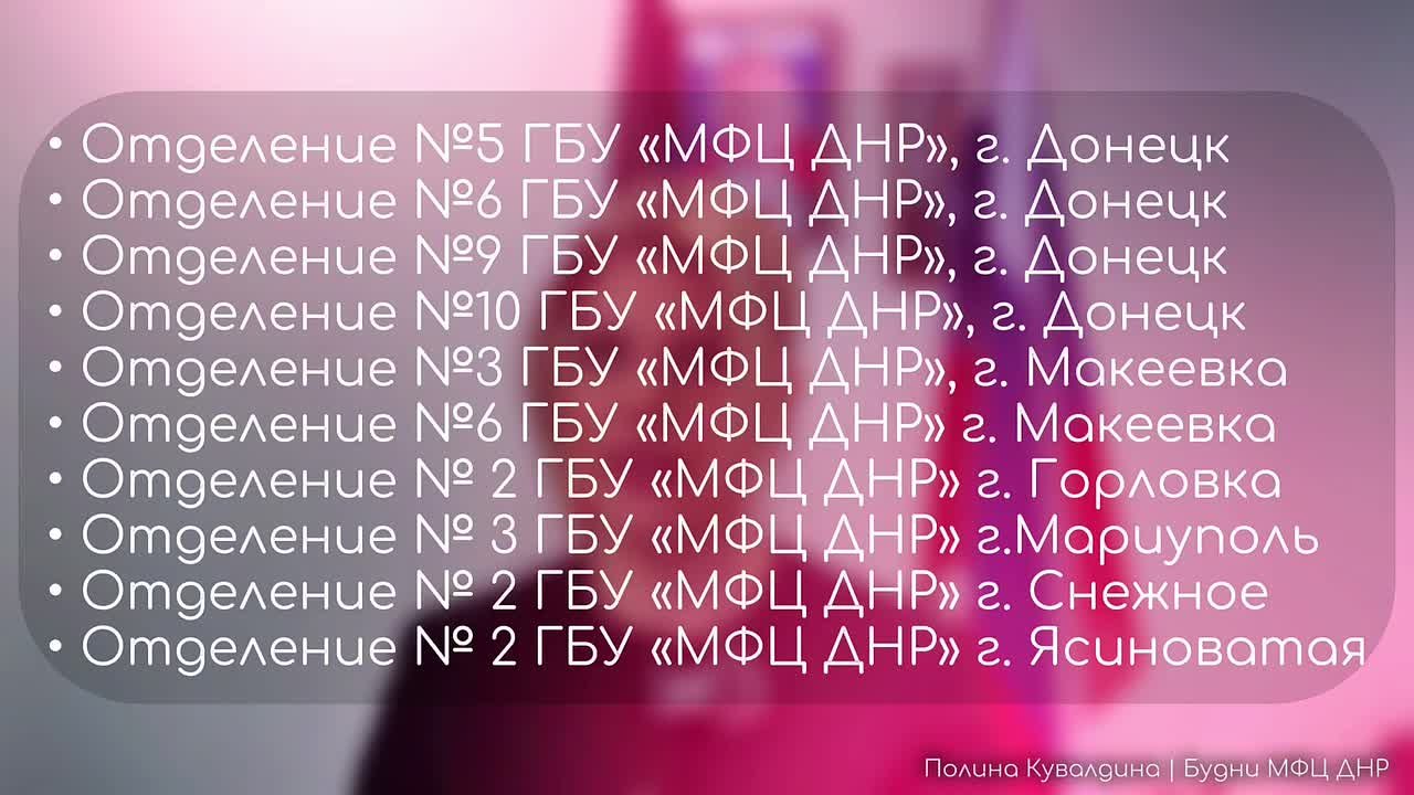Записаться на прием, узнать о доступных услугах и загруженности отделений можно в чат-боте МФЦ ДНР.