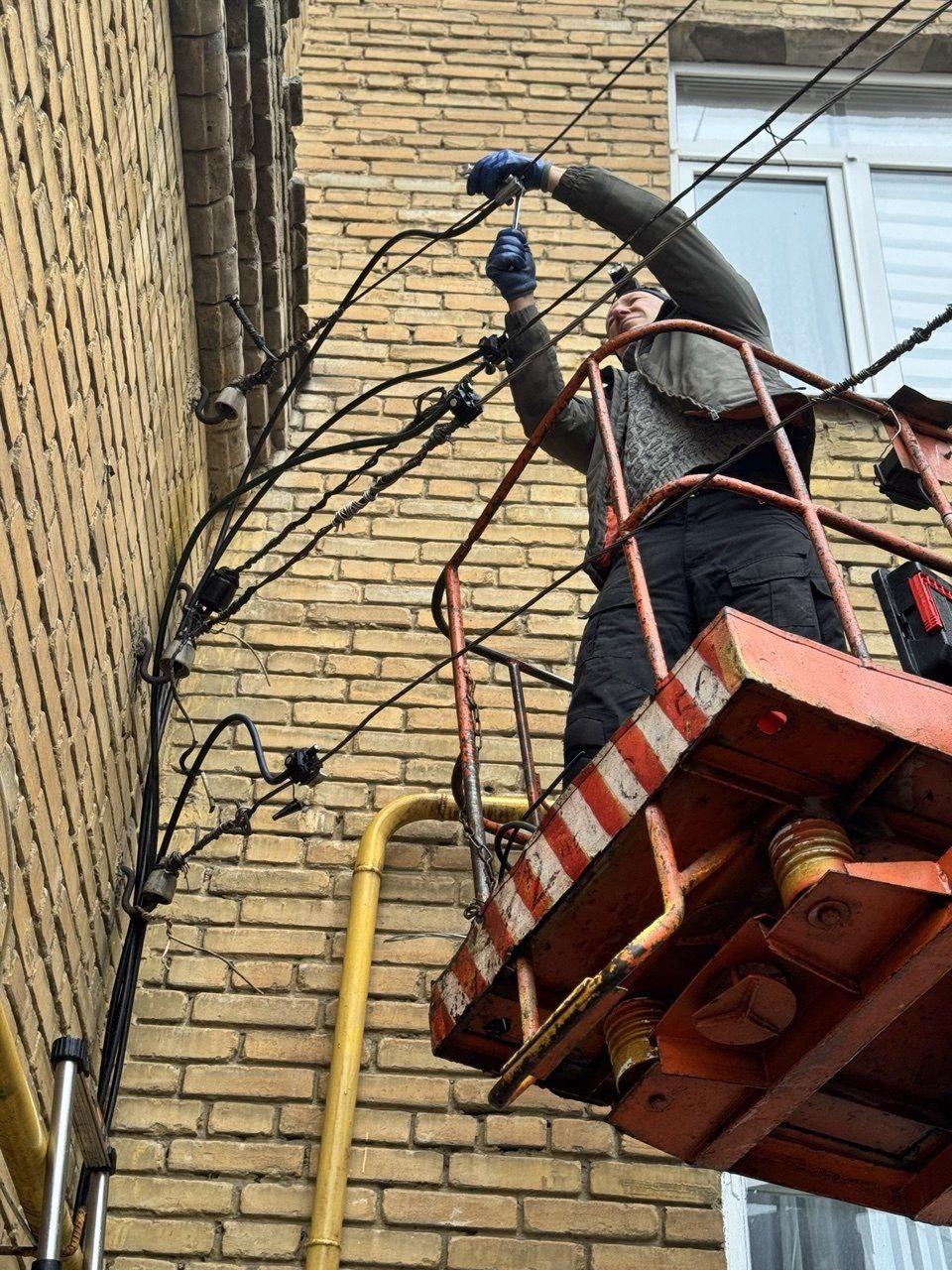 Электрики региона-шефа отремонтировали наружные электропровода в доме по улице Школьной.