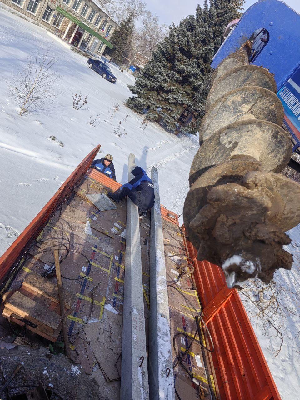 Сахалинские электрики заменили опоры ЛЭП в Шахтерском районе