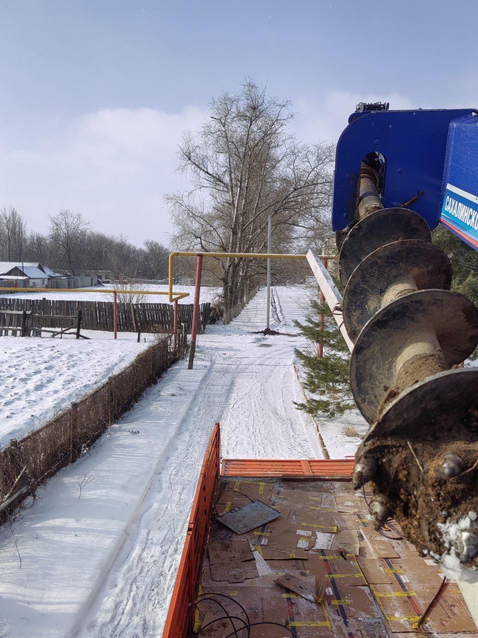 В составе Шахтерского РЭС бригада электриков из Сахалинской области участвовала в работах в селе Малоорловка, где в районе школы потребовалась замена линии электропередачи.