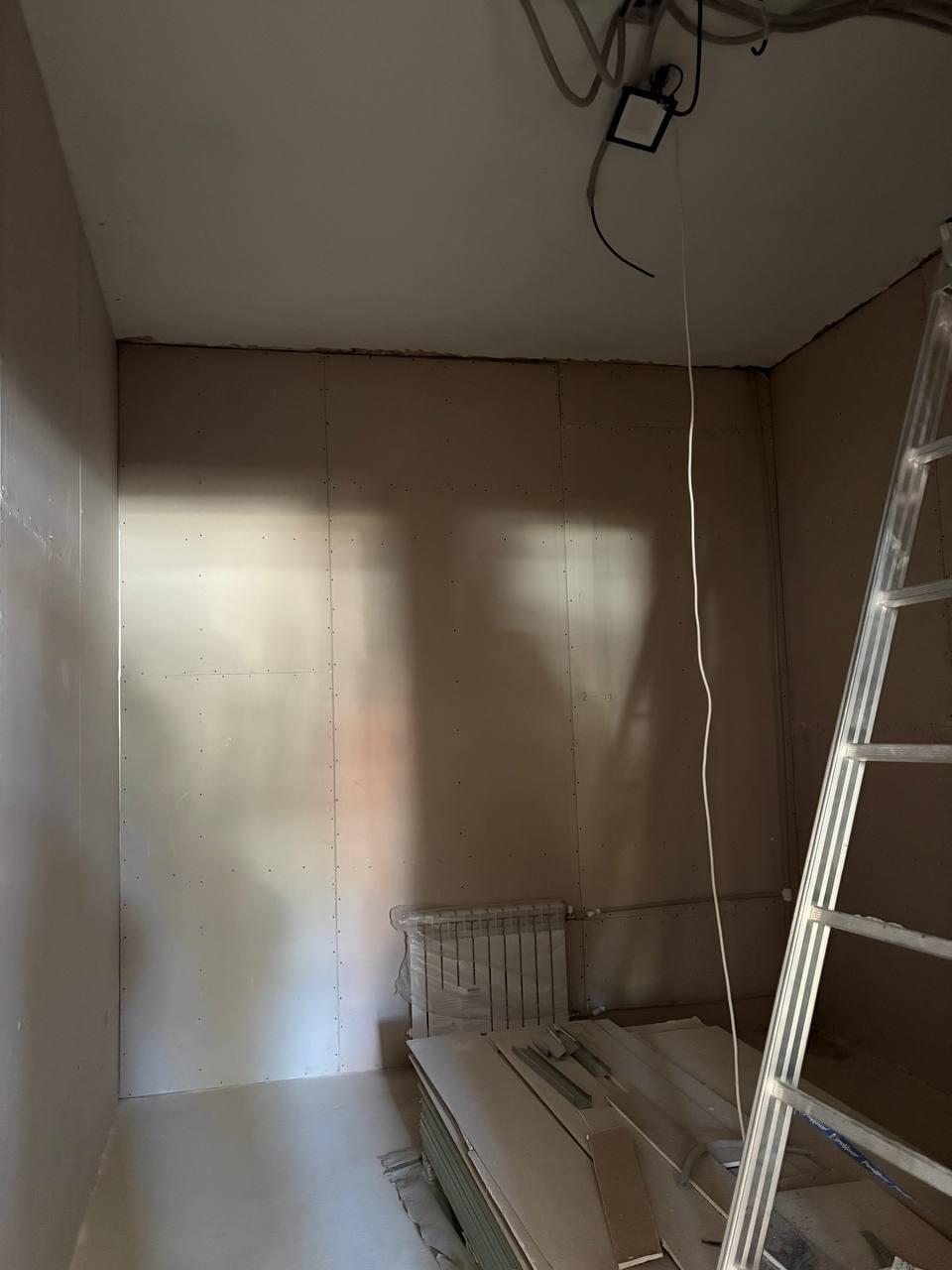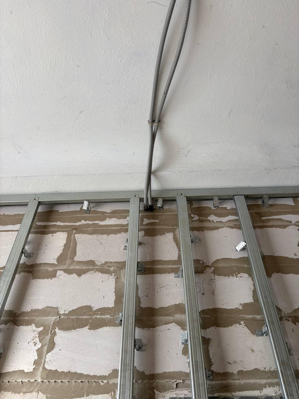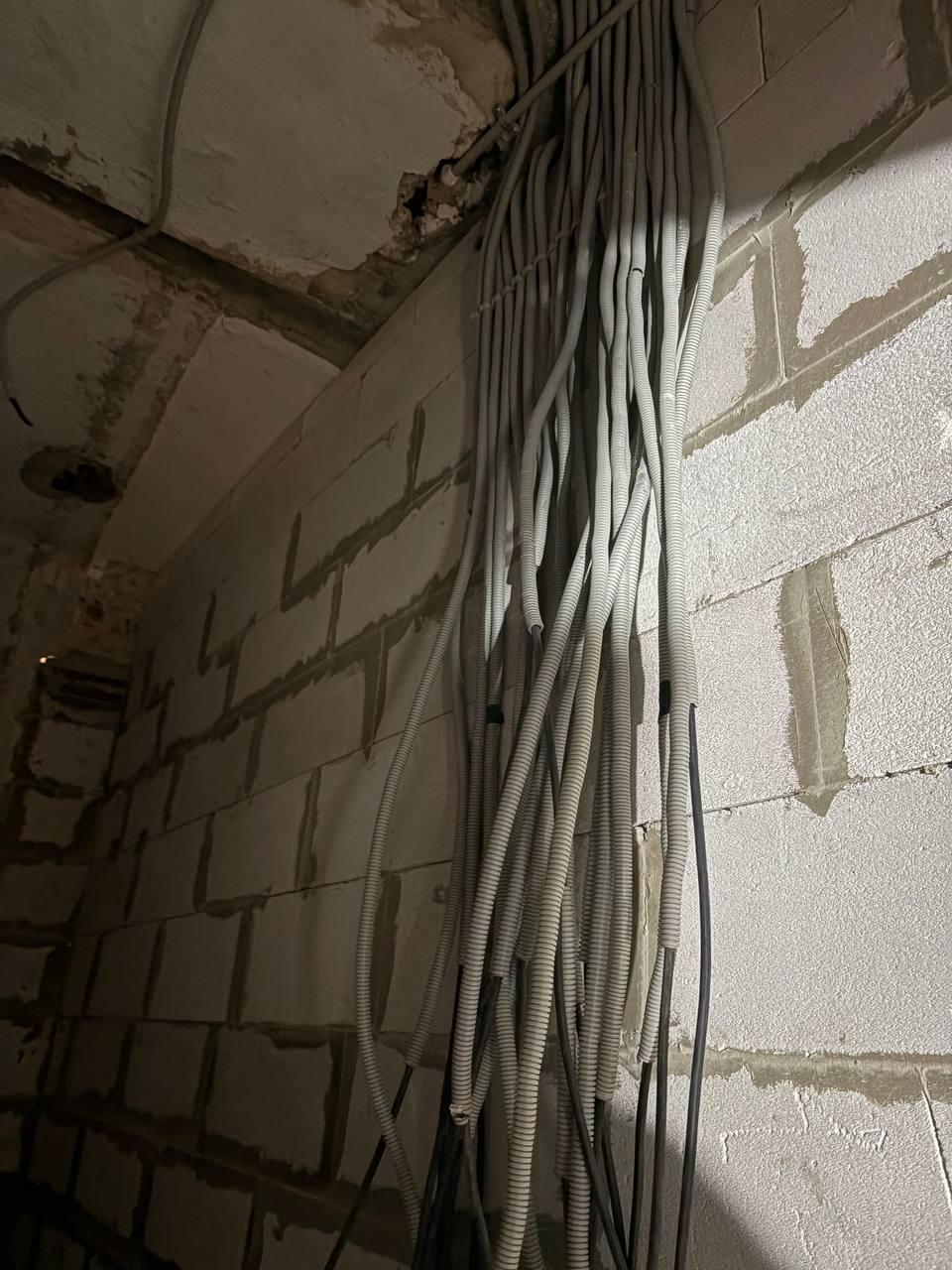 В помещениях завершается установка на стены гипсокартонных листов, а также разводка электрики.