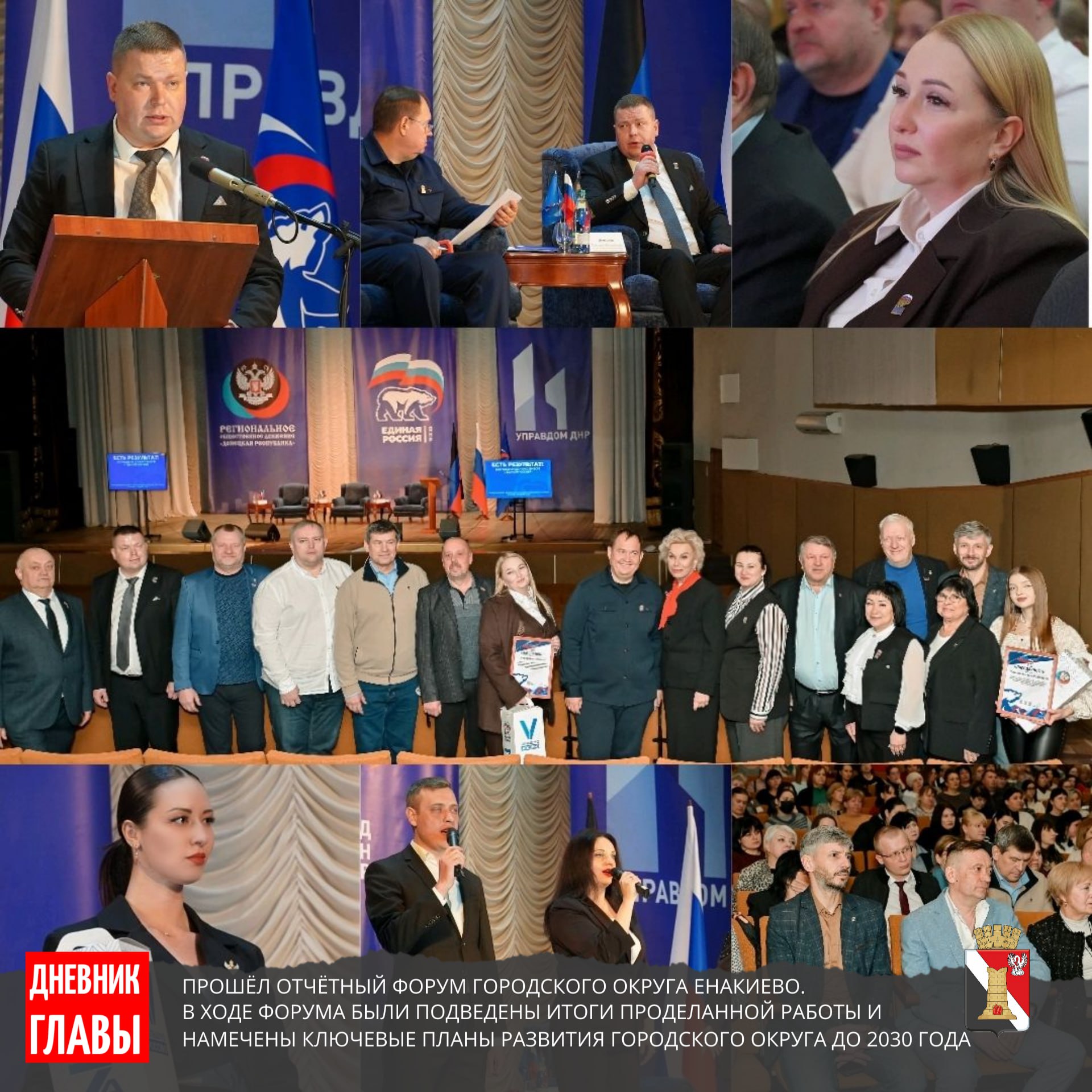 В городском округе Енакиево прошёл отчётный форум городского округа Енакиево. Были подведены итоги проделанной работы и намечены ключевые планы развития городского округа до 2030 года. Обсудили результаты, обозначили точки роста и наметили конкретные шаги по дальнейшему развитию.