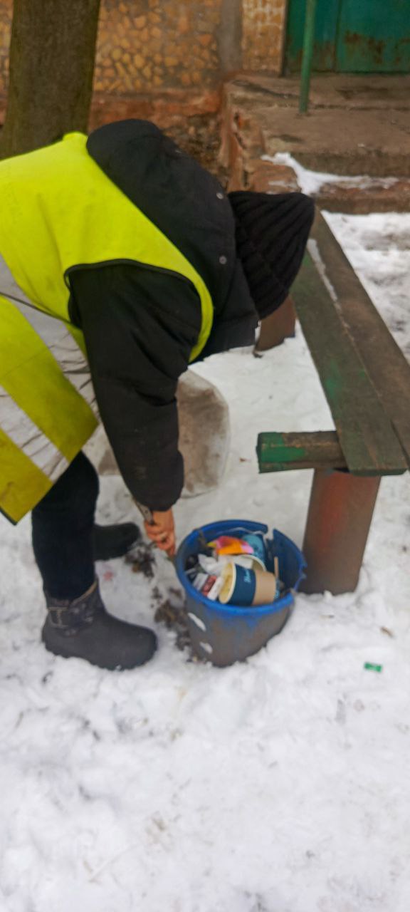 - уборка на контейнерных площадках, придомовых территориях, межквартальных проездах, детских площадках, газонах, центральных улицах, остановках общественного транспорта;