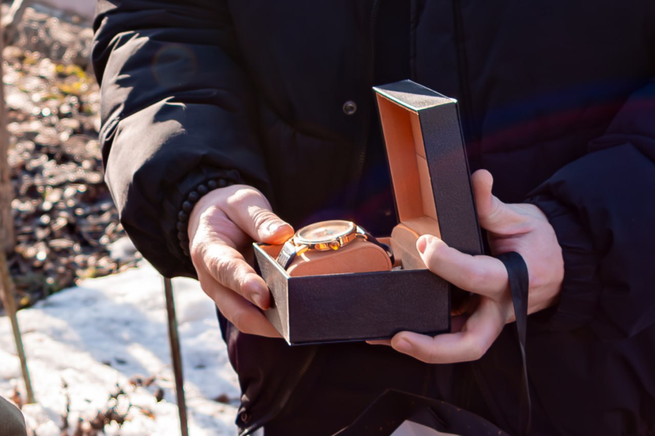 "Глядя на его многочисленные награды, осознаёшь: за каждым граммом металла — годы, потери, но несгибаемая воля. И самое ценное — он до сих пор с нами и всё это помнит. Без привязки к особой дате вручил ему в подарок часы. Именно такие он и просил — с символом Победы. Мелочь? Для нас — мелочь. Для Афанасия Харлампиевича — знак благодарности и уважения. Мы — последние, кто застанет ветеранов",