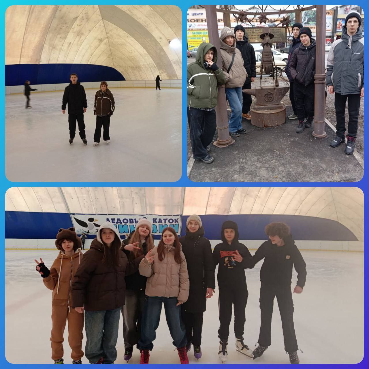 Как же приятно и полезно можно провести время без телефонов? Ученики ГБОУ"Мироновская школа №9 г.о. Дебальцево" вместе с родителями совершили поездку на каток "Пингвин" в городе Луганске. Кто-то чувствовал себя на льду, как настоящий профессионал, а кто-то через падения и усердие быстро освоил технику скольжения. Вкусно и эстетично пообщались в уютном кафе. С интересом прогулялись по аллее кованых фигур. Вот так можно провести время с друзьями и родителями